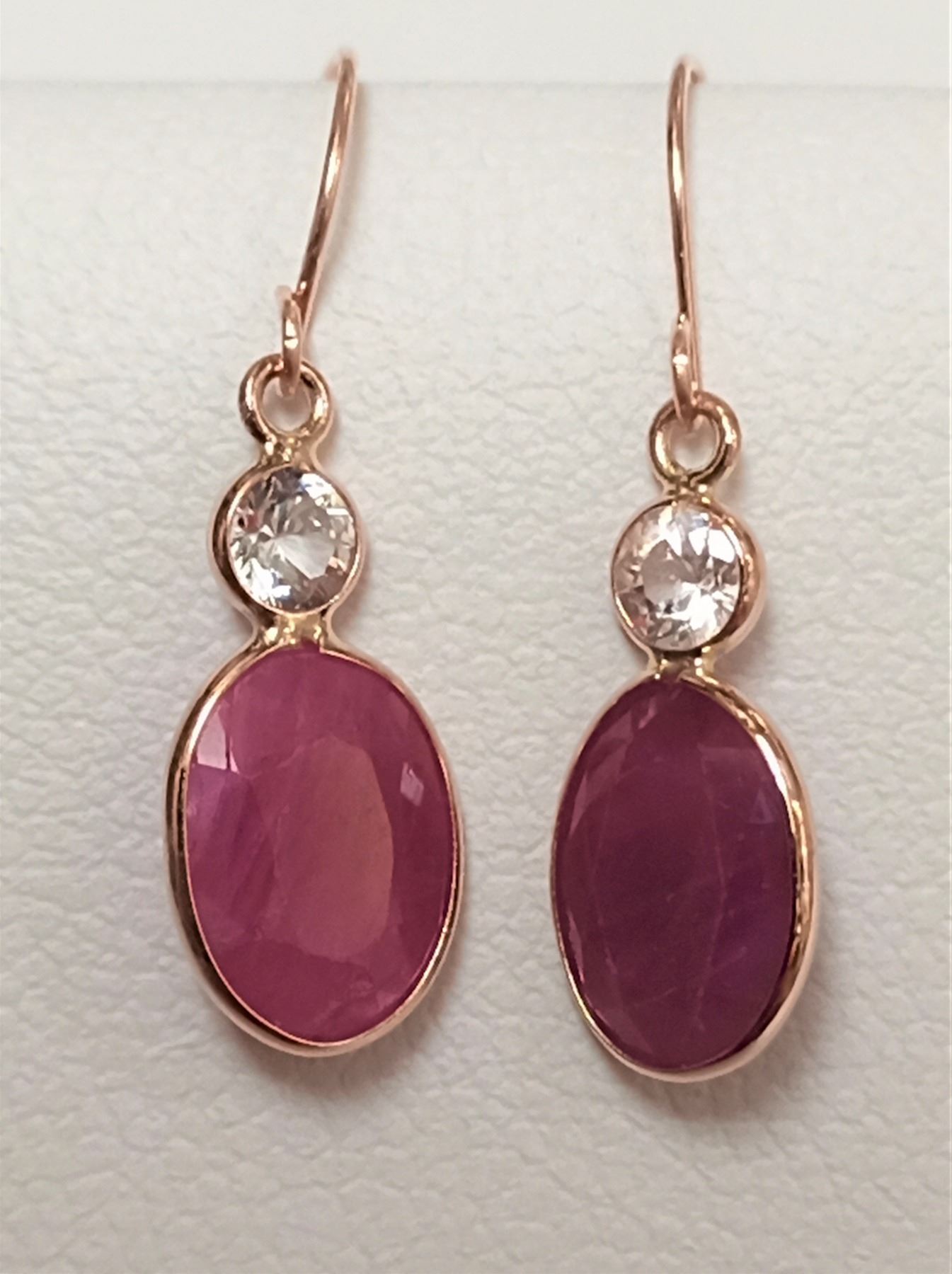 14K ROSE GOLD BURMESE RUBY (2.6CT) WHITE SAPPHIRE (0.25CT) EARRINGS