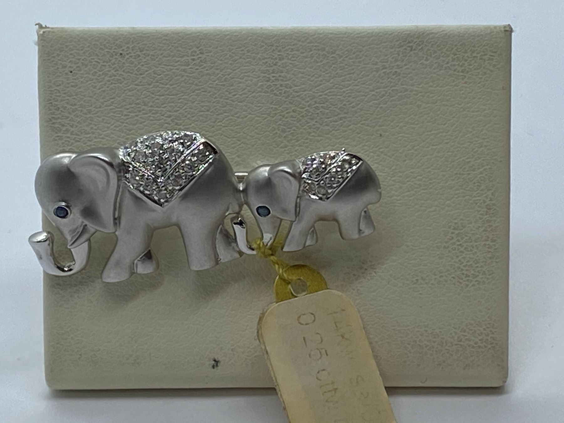 14K WHITE GOLD AND DIAMOND ELEPHANT BROCHE RETAIL 1170.00