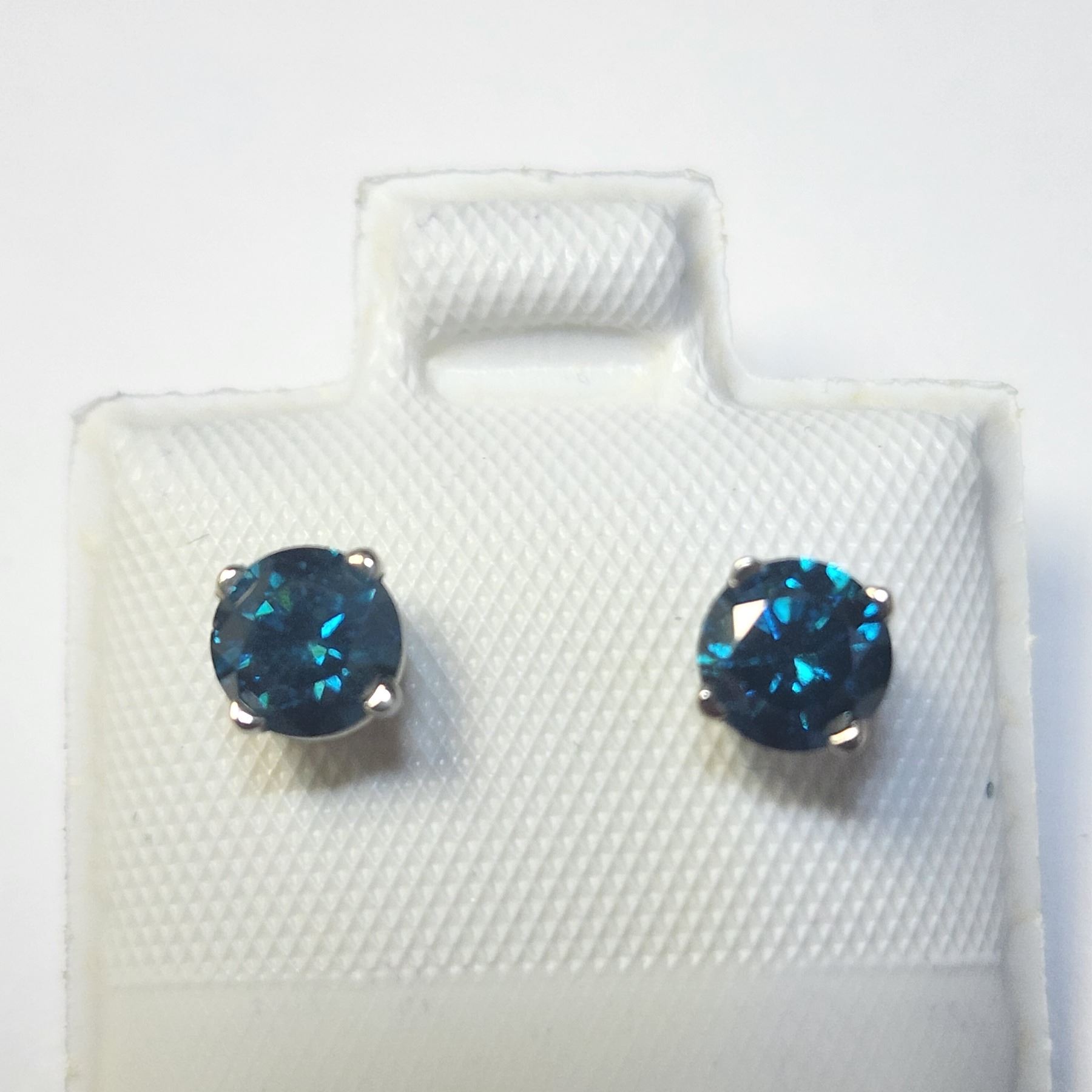 14K WHITE GOLD BLUE DIAMOND TREATED(0.9CT) EARRINGS (WEIGHT 0.67G)