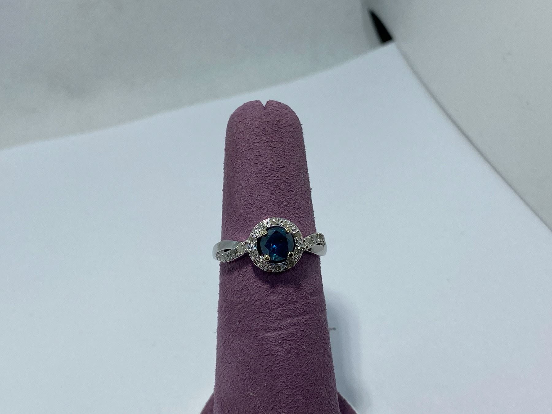 14K WHITE GOLD BLUE/GREEN DIAMOND RING