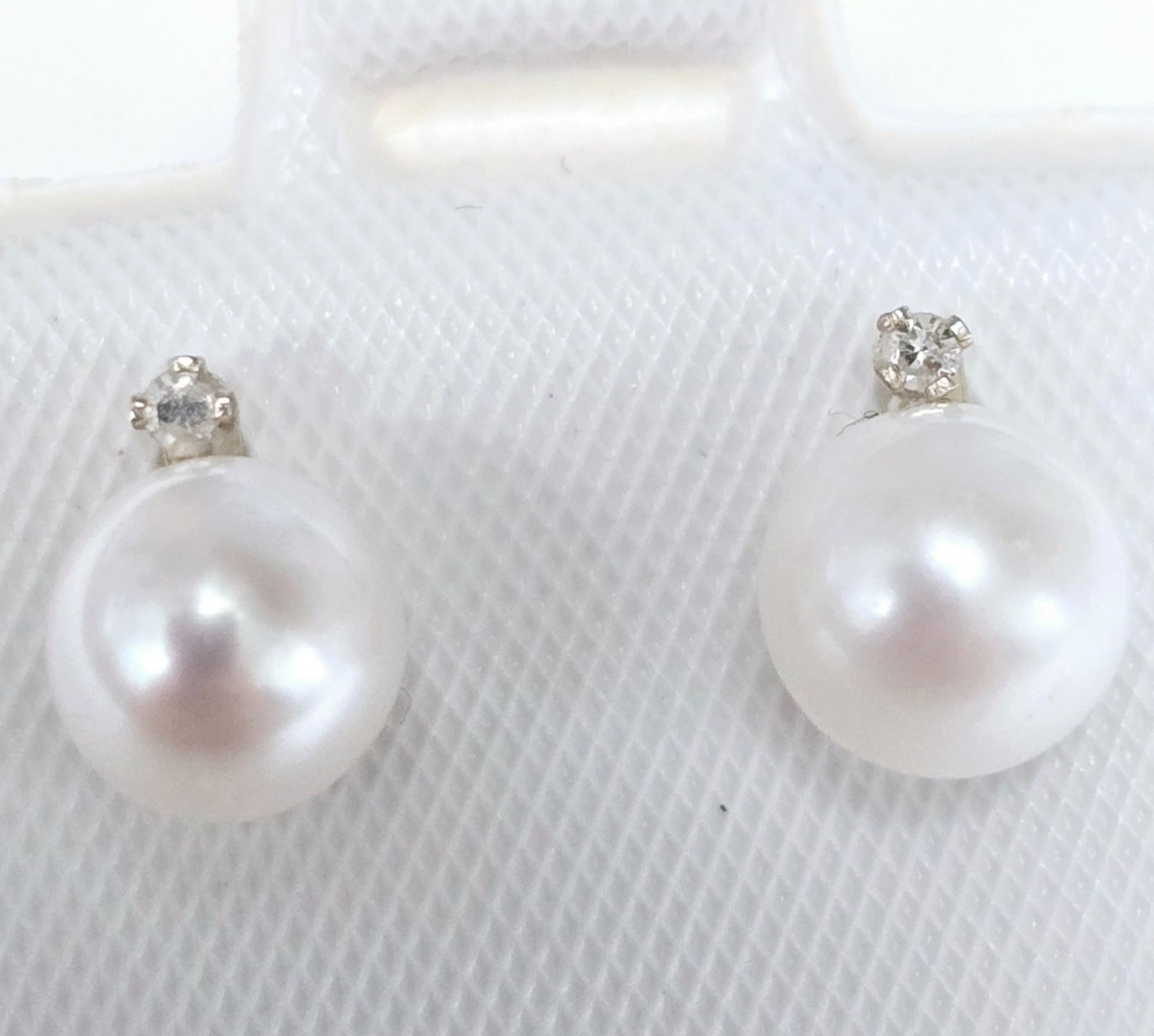 14K WHITE GOLD PEARL AND DIAMOND 0.02CT EARRINGS SUGGESTED RETAIL VALUE $240
