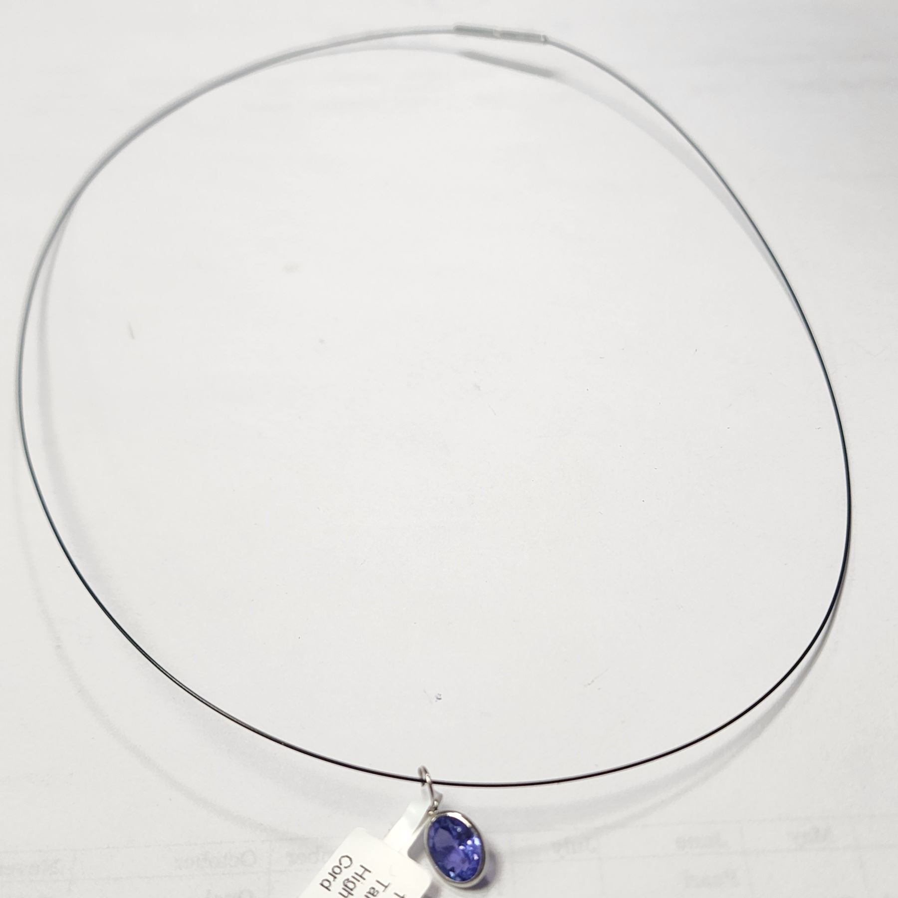14K WHITE GOLD TANZANITE WITH HIGH FASHION CHORD NECKLACE (WEIGHT 0.93G)