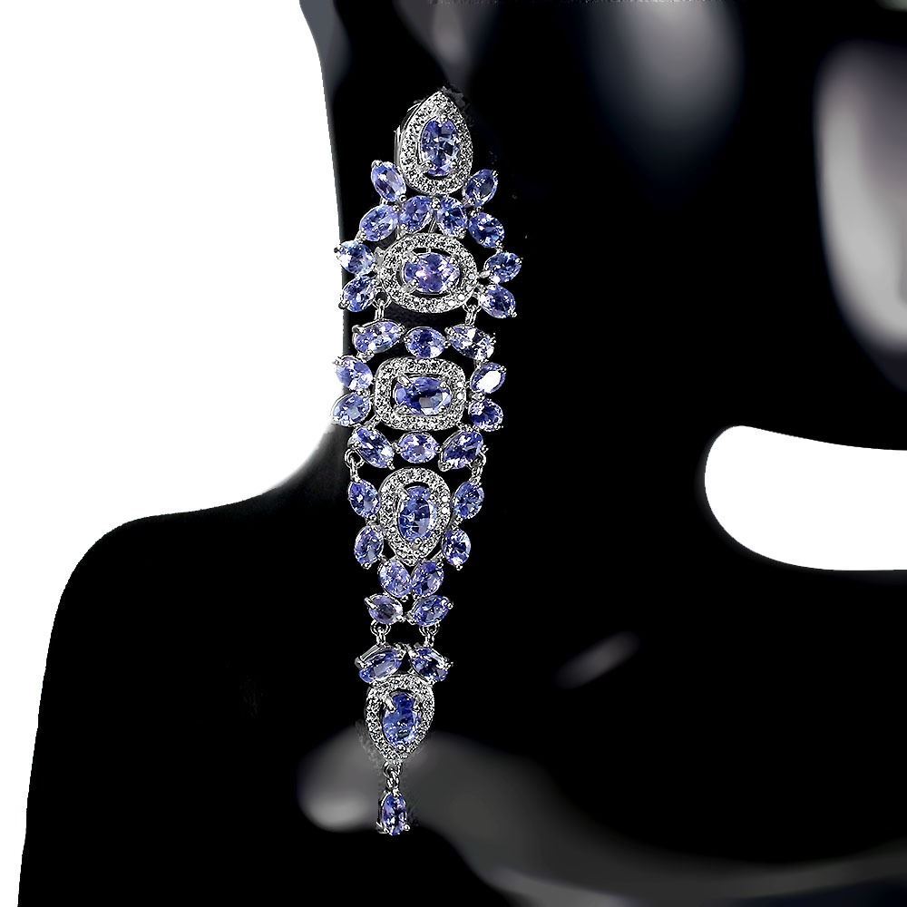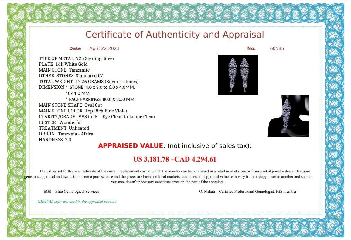 14K White Gold Plated & Unheated Oval blue Tanzanite Earrings - retail appraisal value $3,181.78 USD (w/ Certificate Of Authenticity Appraisal)