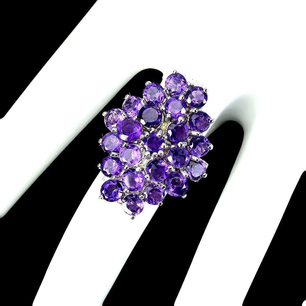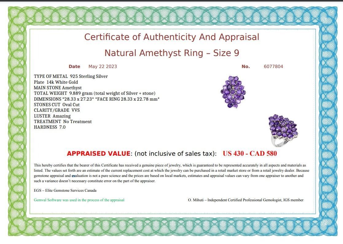 14K White Gold Plated & Unheated Round Amethyst Ring - Size 6 - retail appraisal value $430 USD (w/ Certificate Of Authenticity Appraisal)