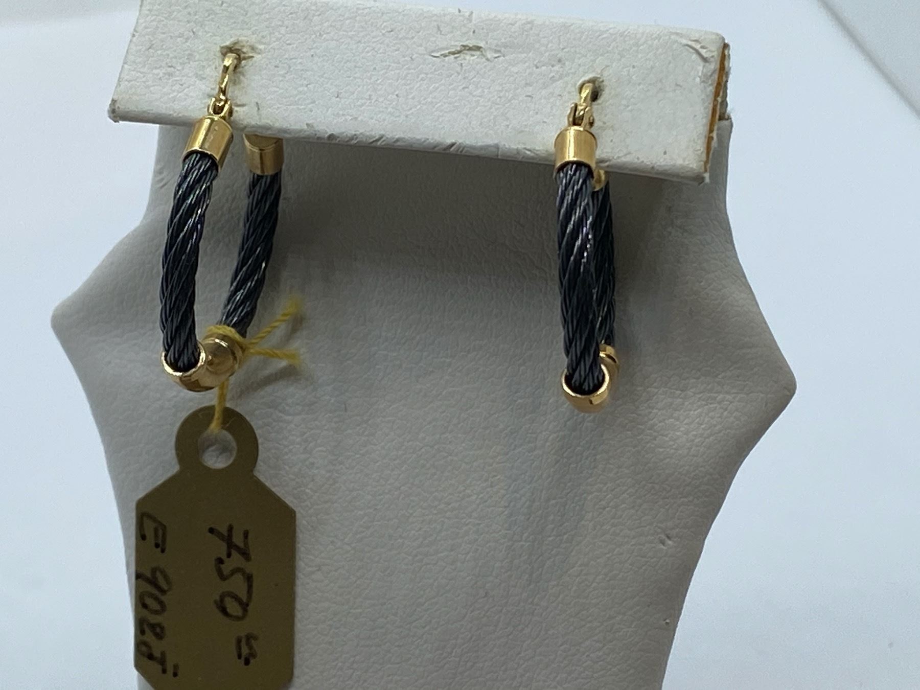 14K YELLOW GOLD AND BLACK TITANIUM EARRINGS RETAIL 750.00