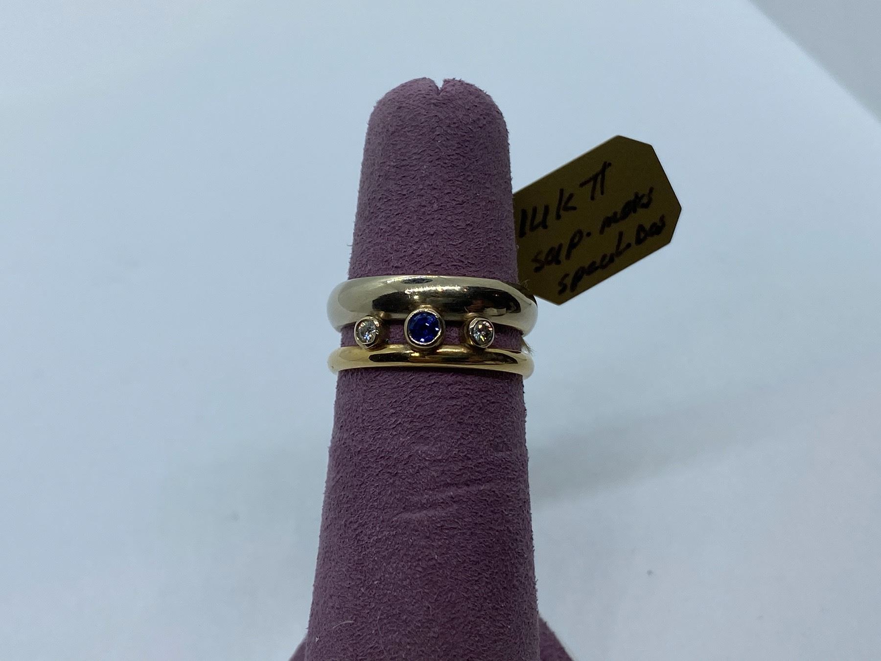 14K YELLOW GOLD RING WITH SAPPHIRE AND MOISSANITES RETAIL 850.00