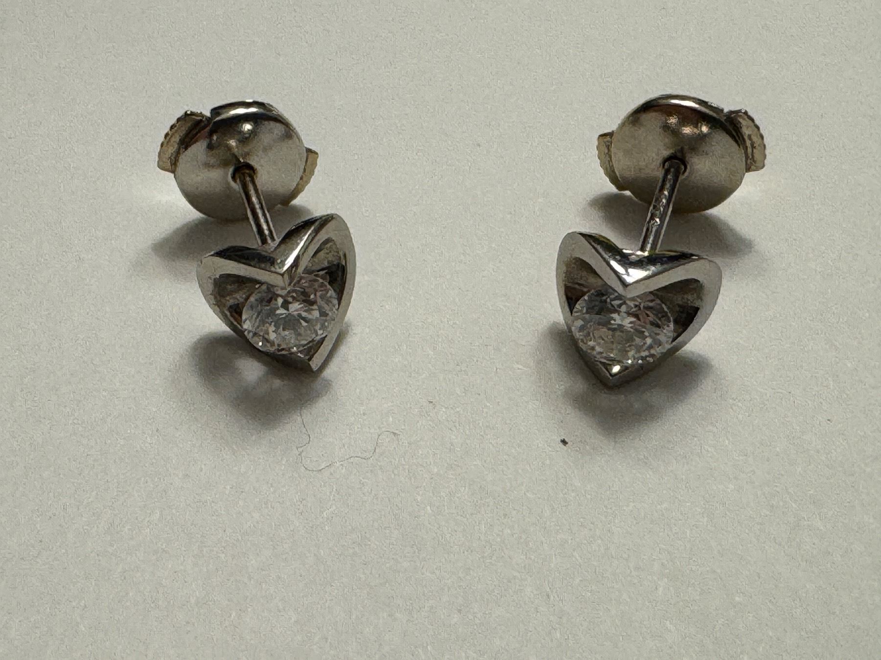 14KT WHITE GOLD DIAMOND EARRINGS WITH 2 ROUND BRILLIANT CUT CANADIAN DIAMONDS .50 CARAT, REPLACEMENT $2,500.00 APPRAISAL INCLUDED