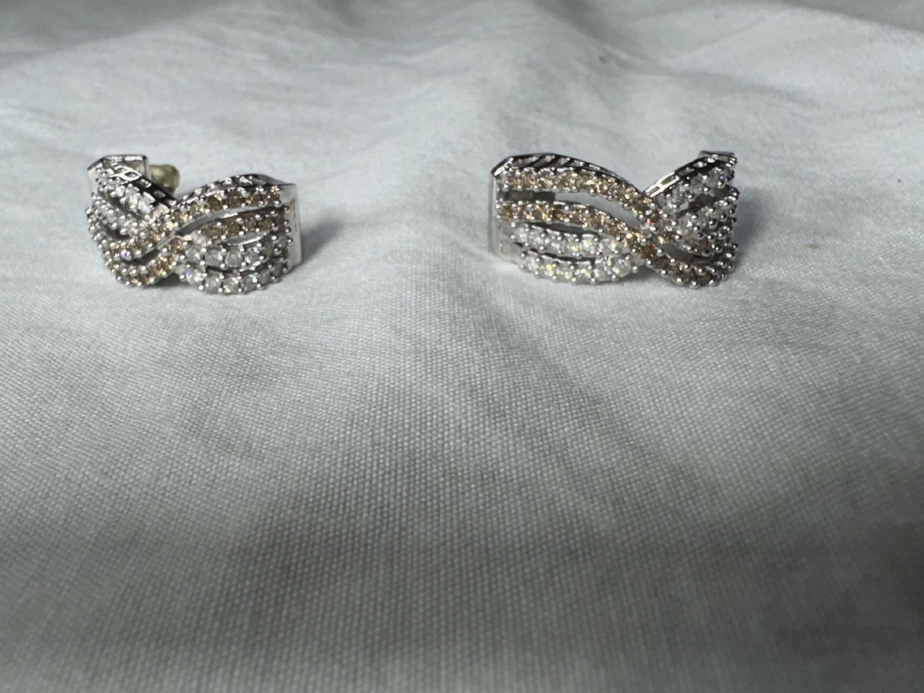 14KT WHITE GOLD NEAR COLOURLESS AND CHOCOLATE COLOUR DIAMOND EARRINGS 110 CHOCOLATE DIAMONDS TOTAL DIAMOND WEIGHT APPROX 1.0CARAT REPLACEMENT $3,100.00 APPRAISAL INCLUDED