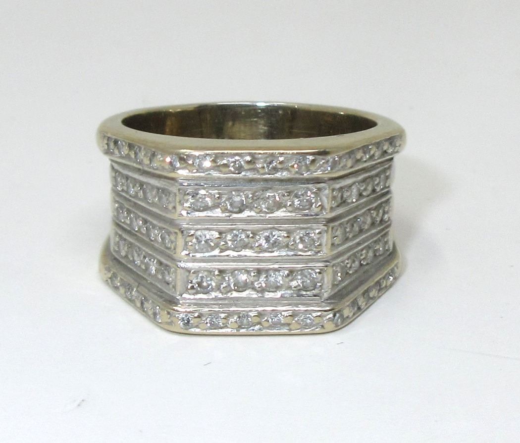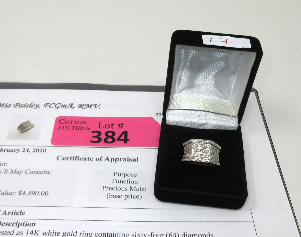 Set with 64 Diamonds .82 CTW. 9.8 Grams. Size 7. With $4490 Appraisal