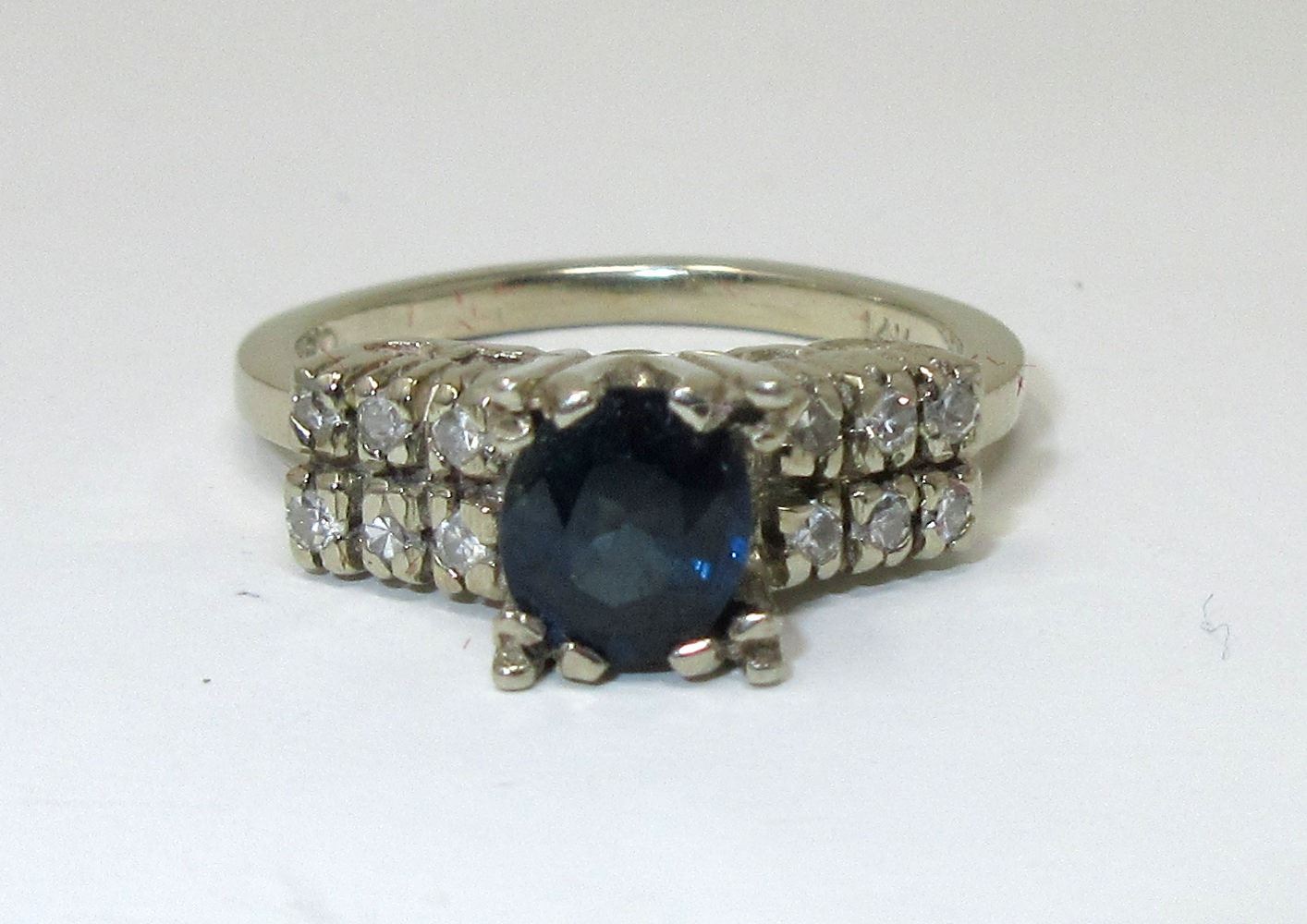 0.74 CT Oval sapphire. 12 Diamonds (0.12 CTW). Ring weighs 3.2 Grams. Includes $2530 Appraisal.