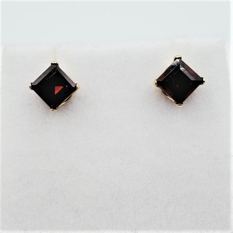 14KT. YELLOW GOLD 4.9MM X 4.9MM NATURAL GARNET STUD EARRINGS, 1.44CTS, W/A $425.00