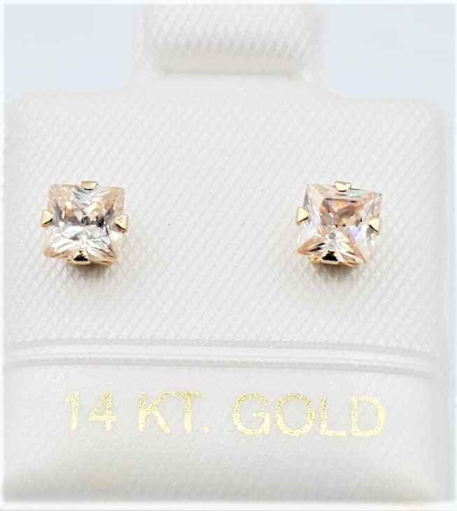 14KT. YELLOW GOLD 4MM SYNTHETIC YELLOW TOPAZ EARRINGS, 0.84CTS, W/A $500.00