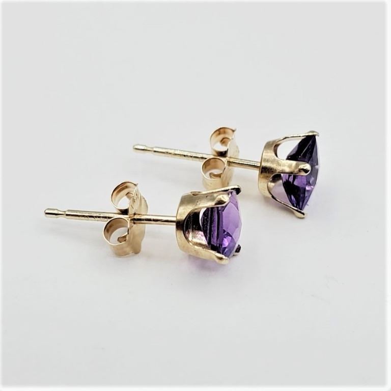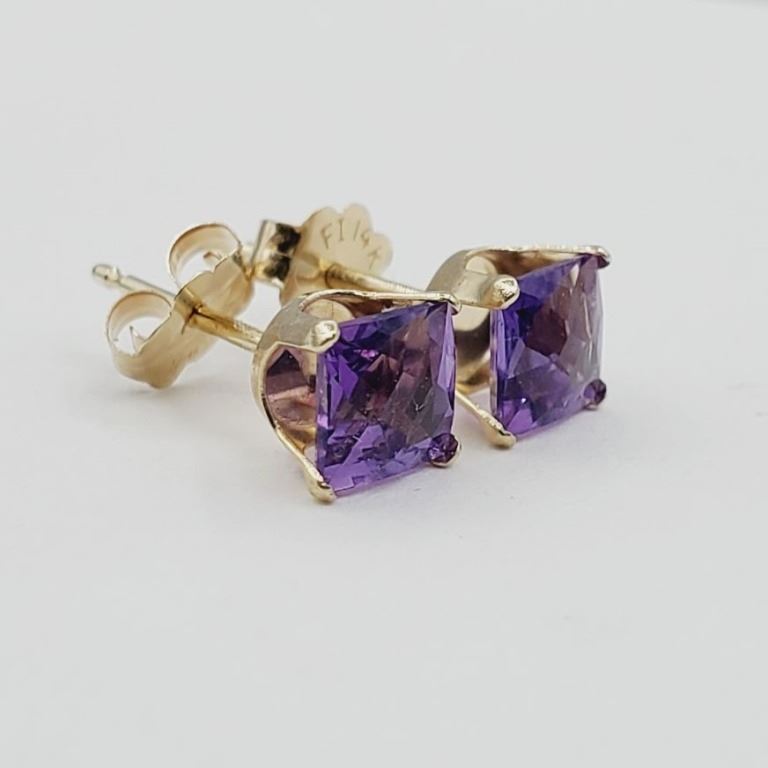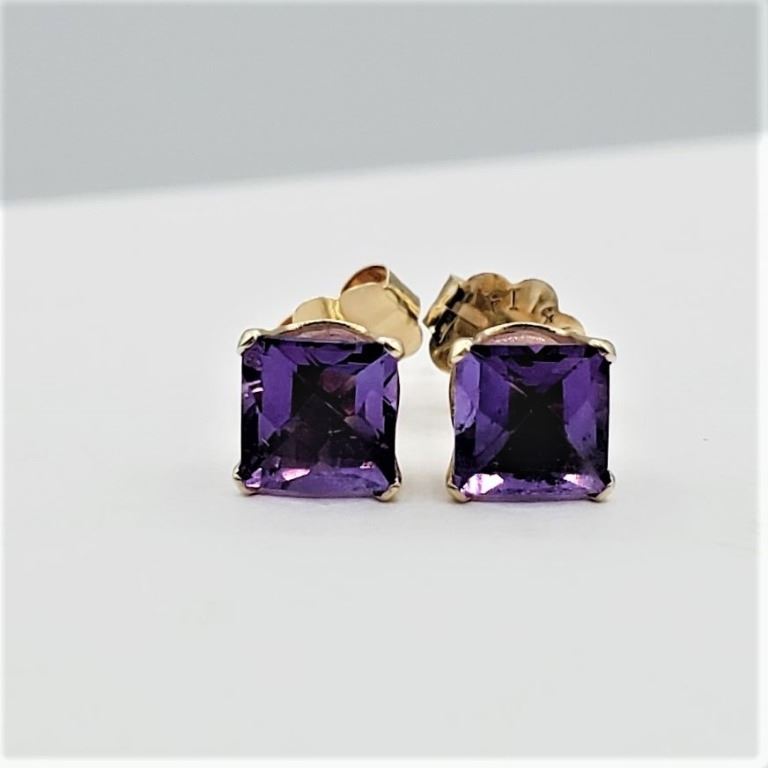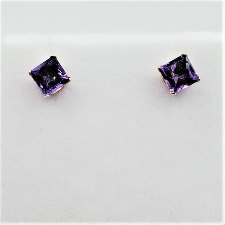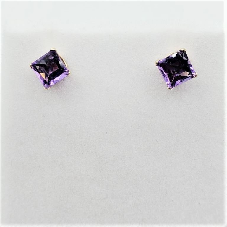 14KT. YELLOW GOLD 4MM X 4MM NATURAL AMETHYST EARRINGS, 0.60CTS, W/A $635.00