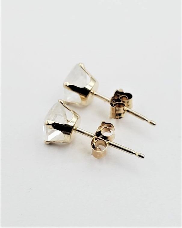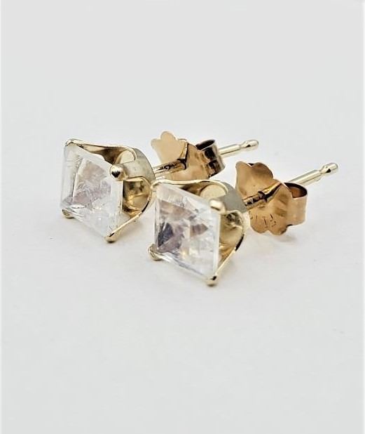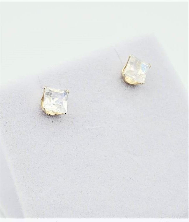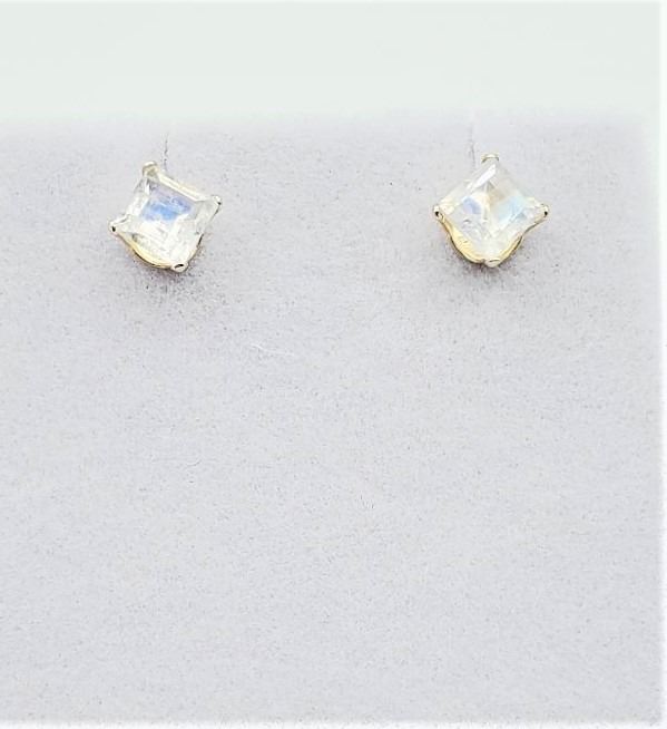 14KT. YELLOW GOLD 4MM X 4MM NATURAL MOONSTONE EARRINGS, 0.75CTS, W/A $475.00