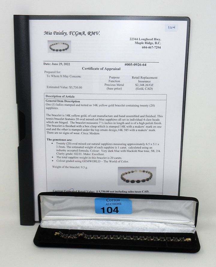 20 Carats of Sapphires. Length 7 1/2 inches. Gemologist Appraisal $5,730.