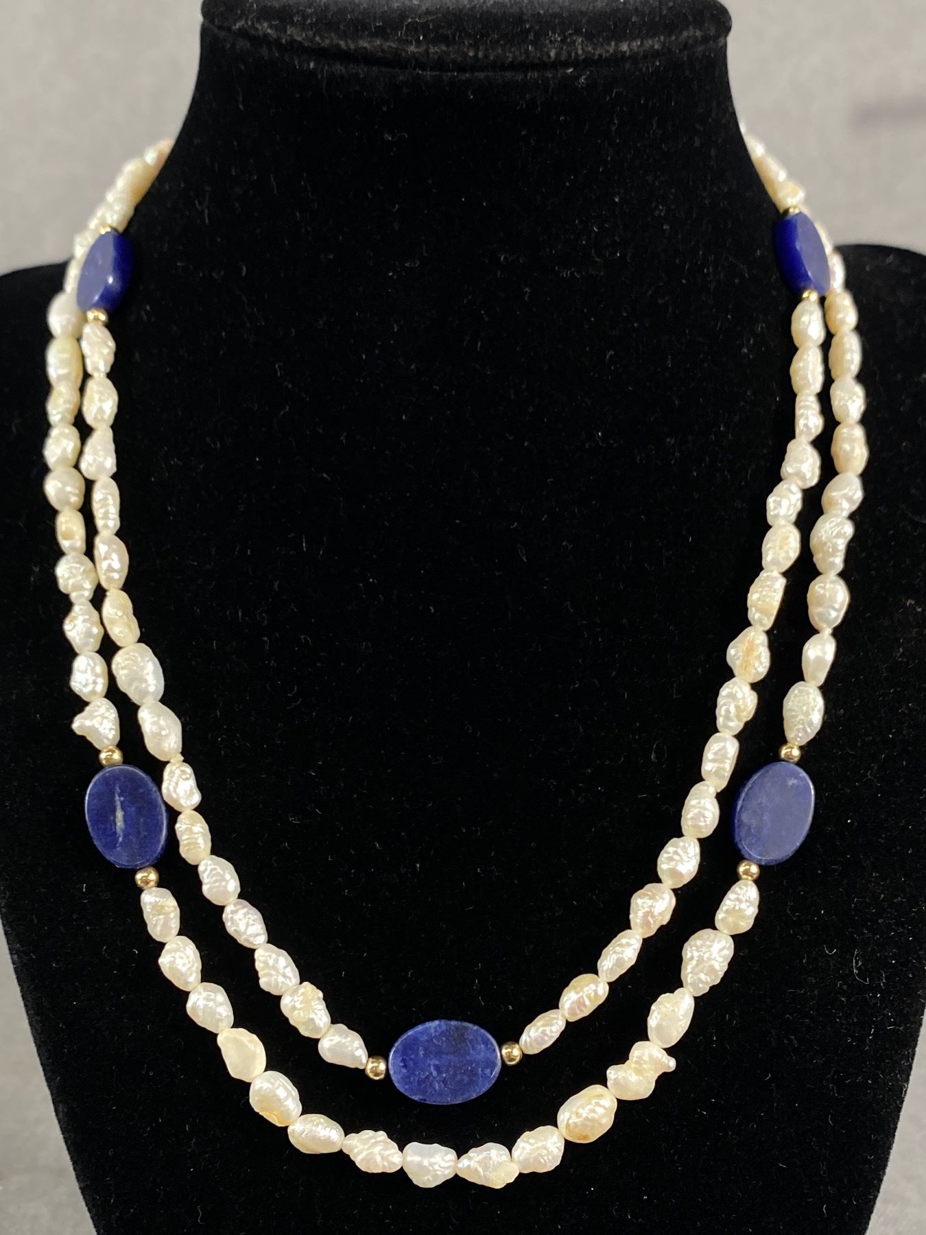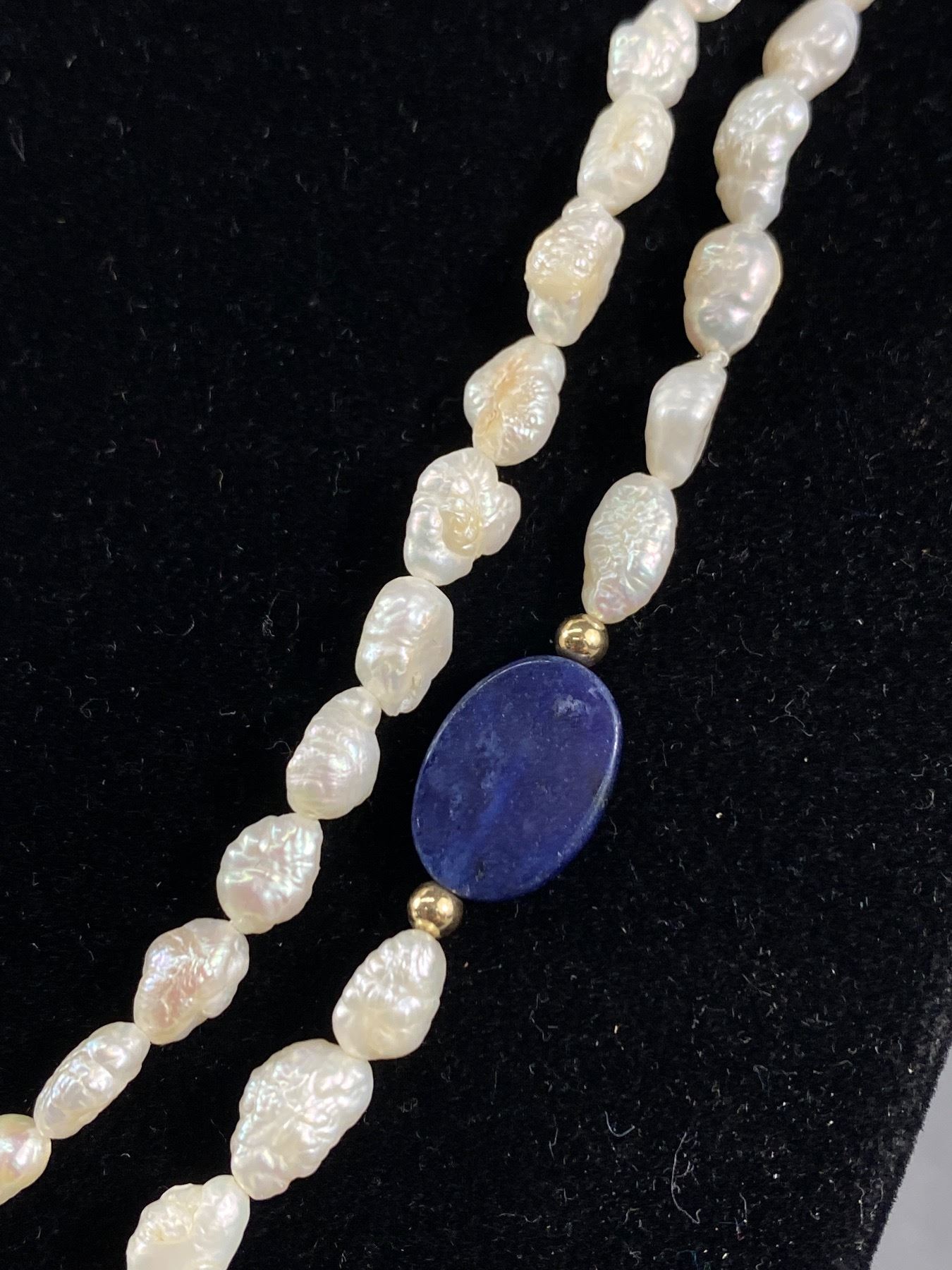 14k Gold Bead Genuine Lapis & Pearl Necklace