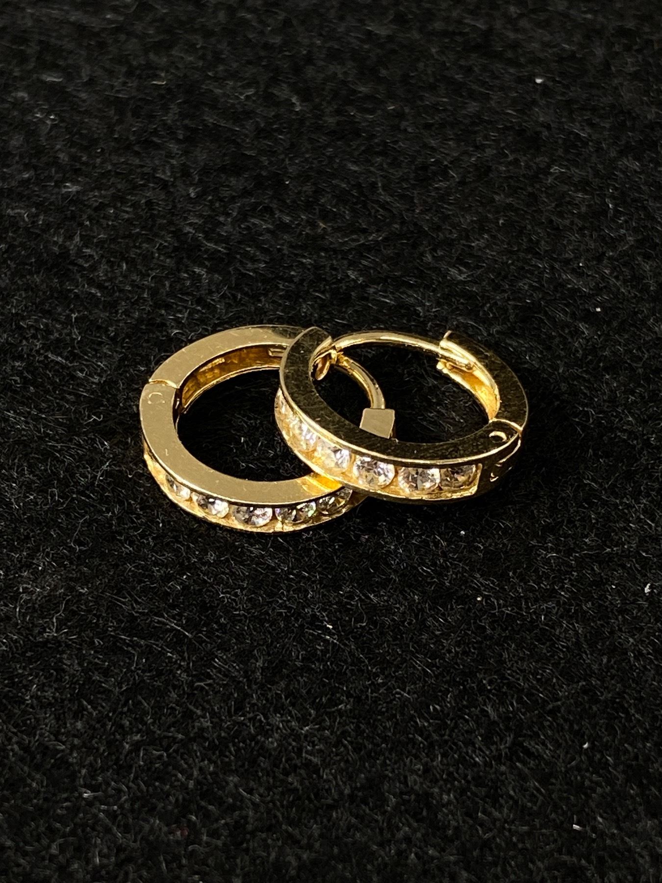 14k Yellow Gold With Sparkly White Stones Huggie Hoop Earrings 2.7 Grams 3/4" X 5/16" - Marked & Tested