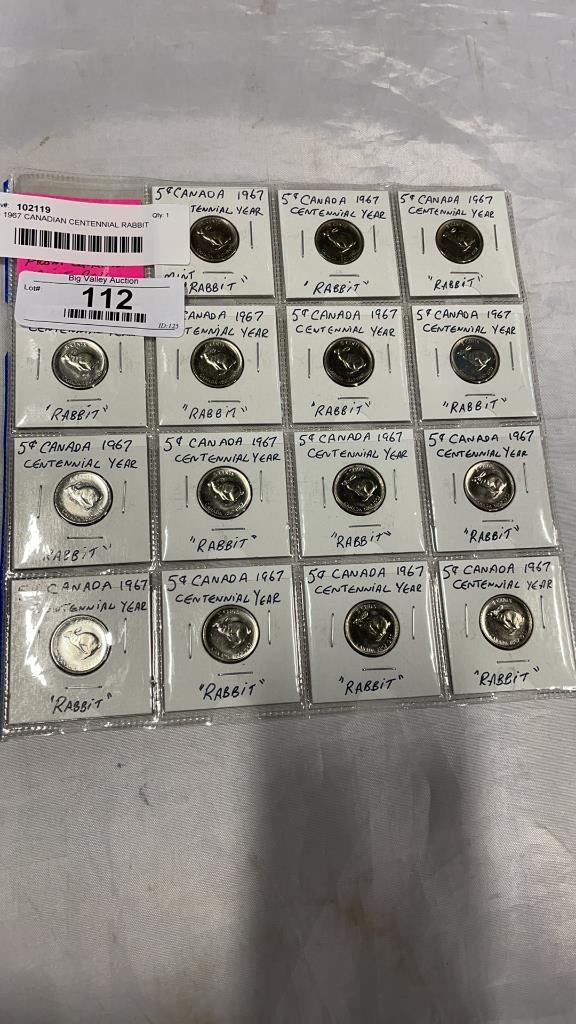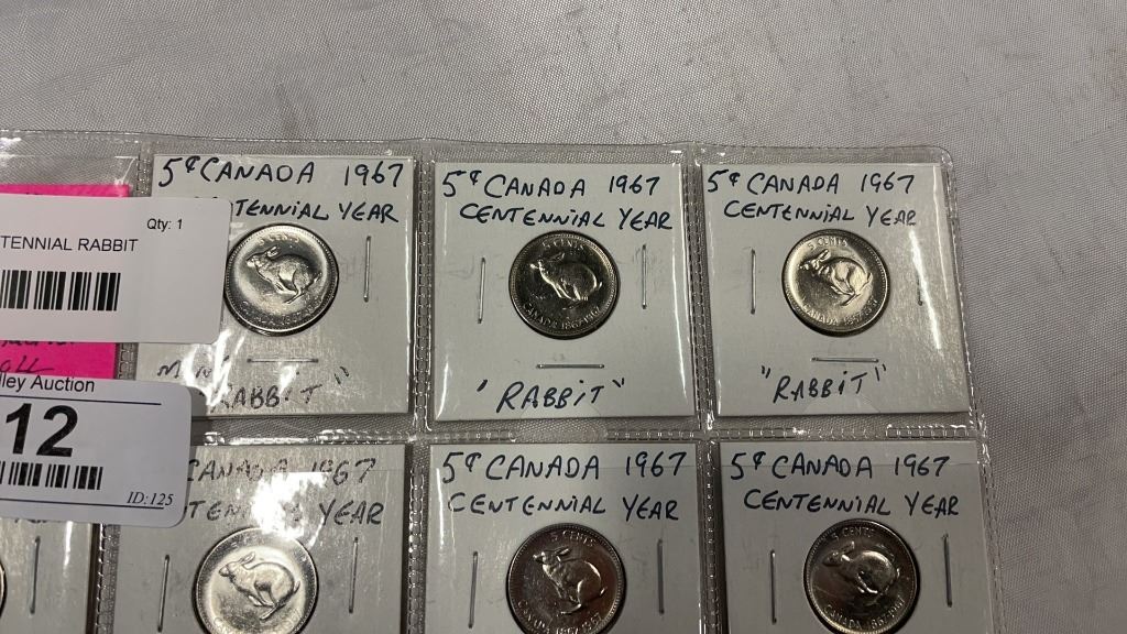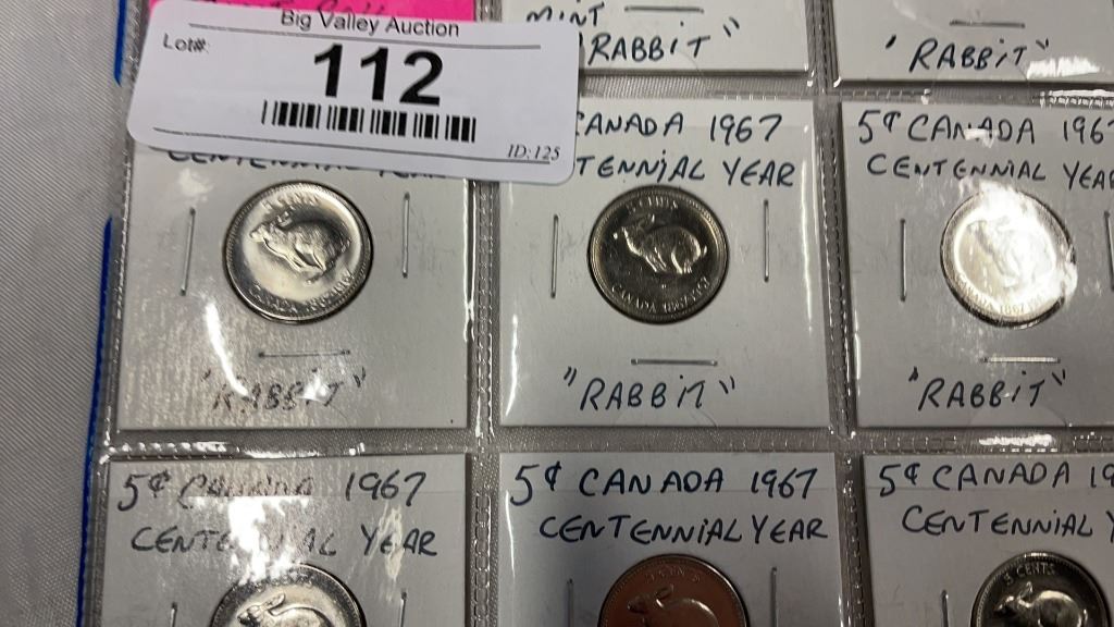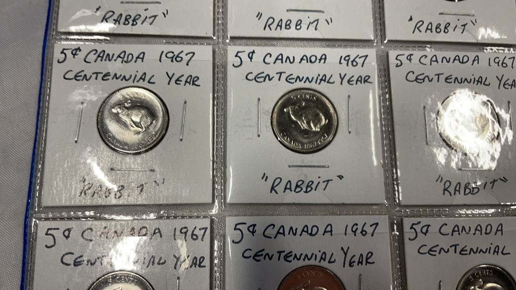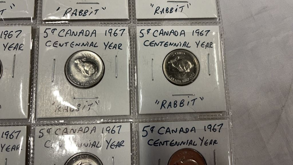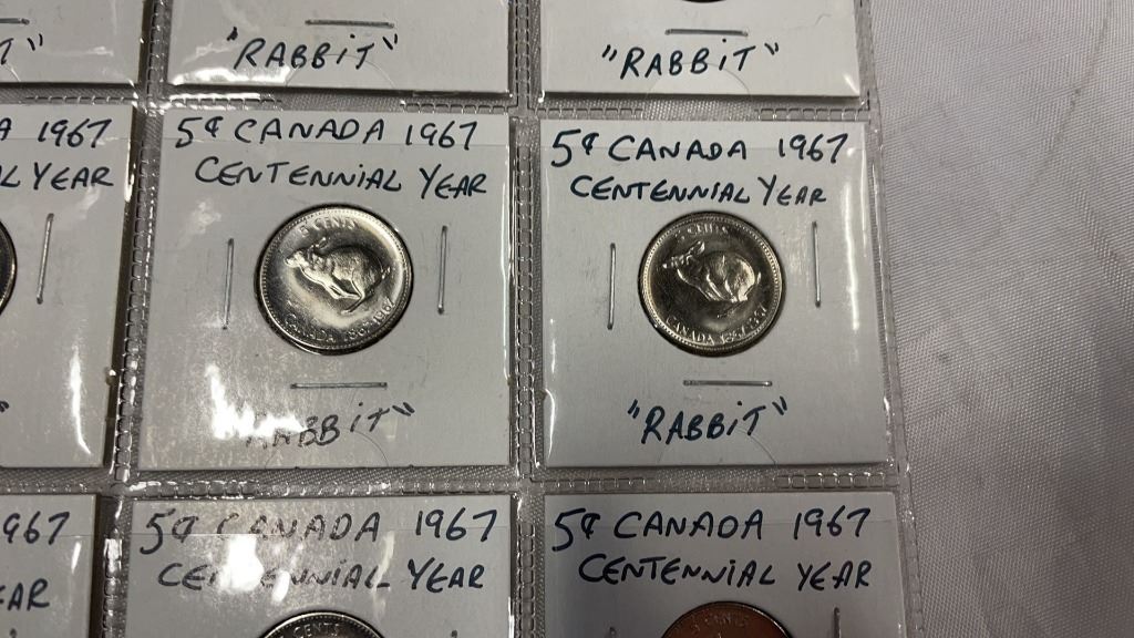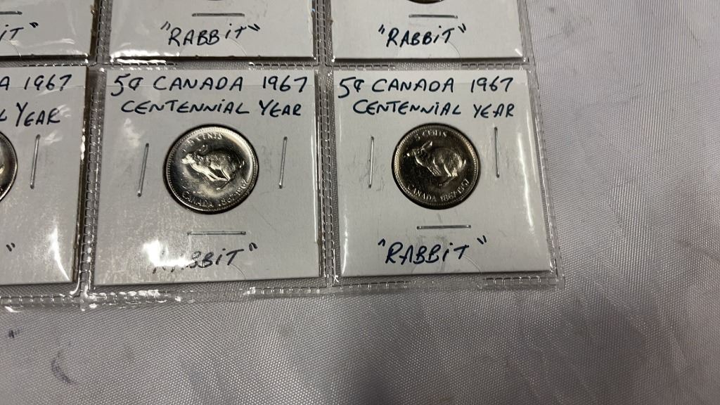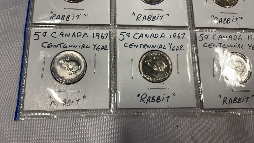 15 1967 CANADIAN CENTENNIAL RABBIT NICKELS FROM CANADIAN MINT ROLL