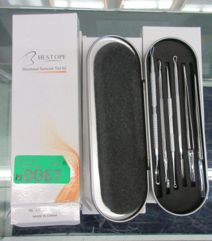 Stainless steel. 4 Double ended non-slip tools and 2 specialty tweezers in metal case.