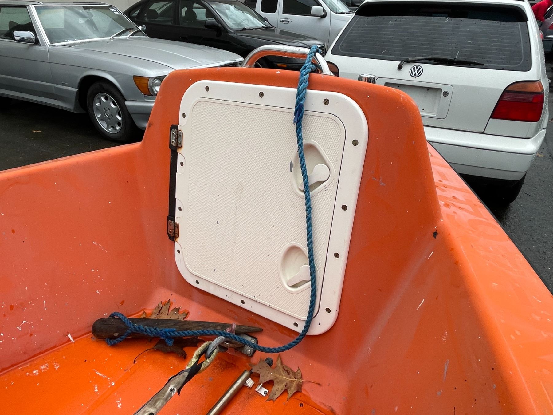 15' ORANGE M.O.B.4.5., 6 PERSON 500 KGS CAPACITY RIGID RESCUE BOAT WITH ICOM MARINE VHF (OFF BC FERRIES, VICTORIA)
