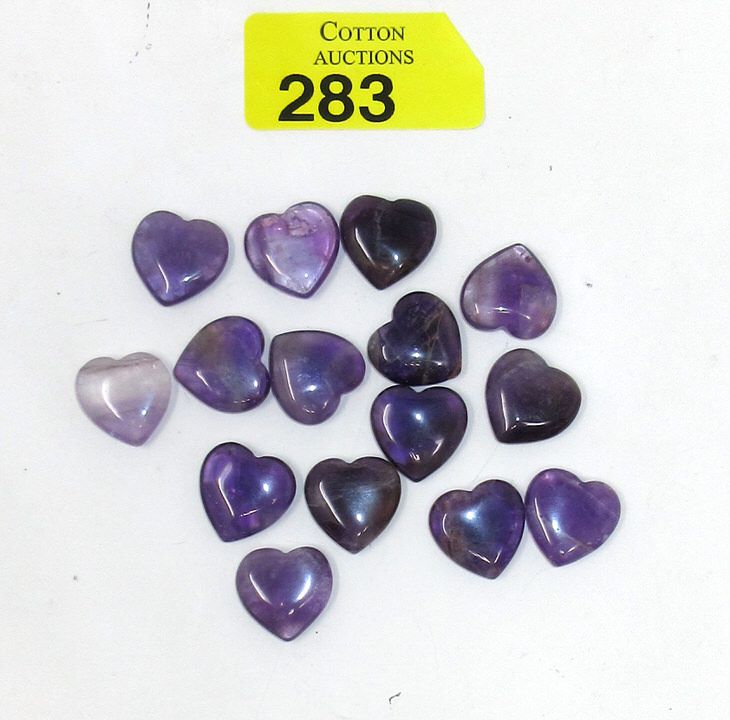 Amethyst hearts measure 20 mm x 20 mm x 6 mm thick.