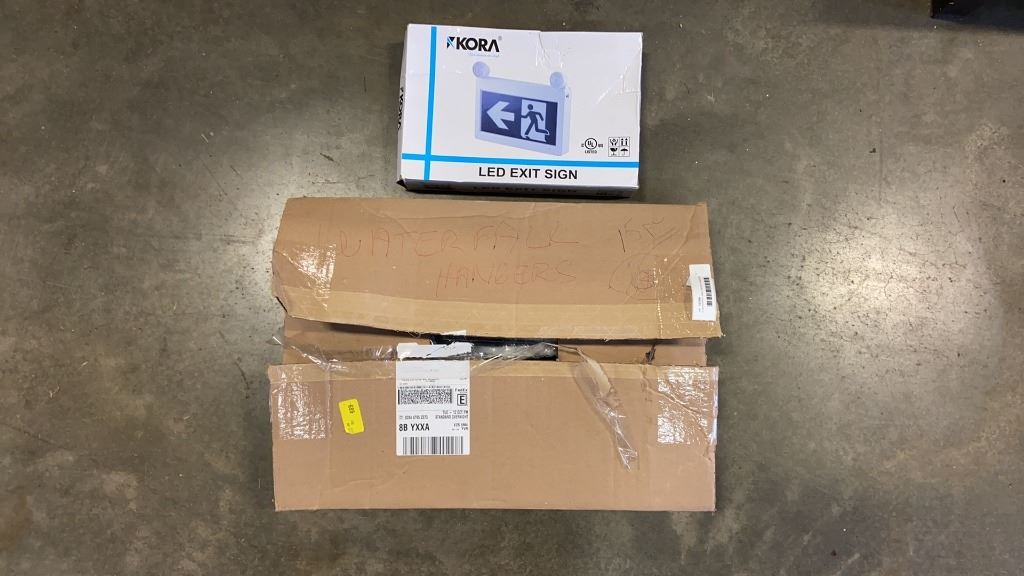 15 WATERFALL WALL MOUNT HANGERS, AND NEW KORA EXIT SIGN