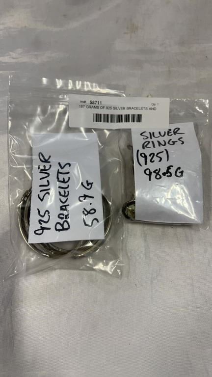 157 GRAMS OF.925 SILVER BRACELETS AND RINGS