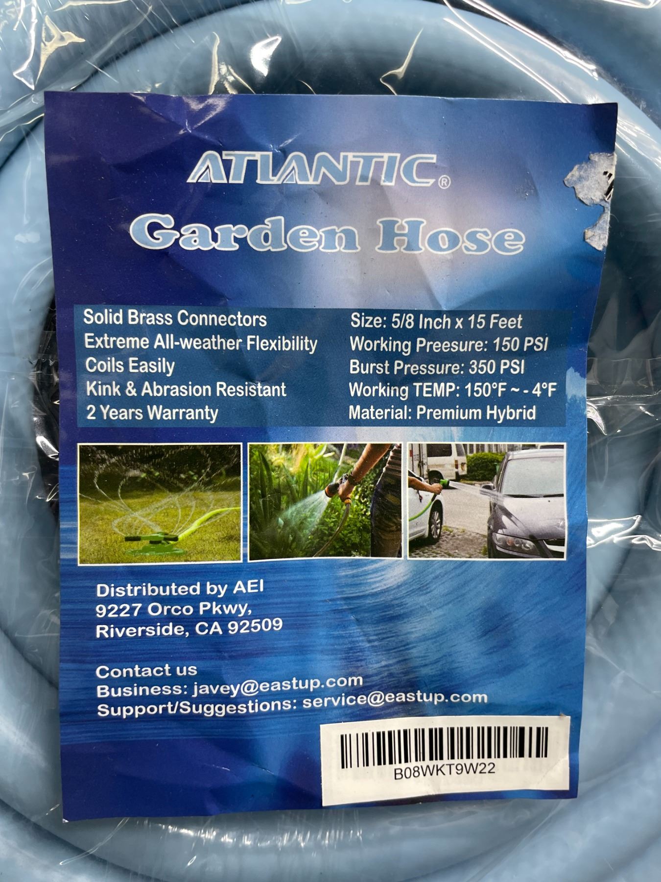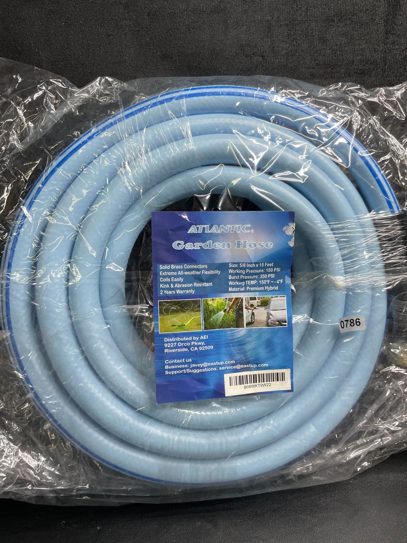 15FT Atlantic Garden Hose - 5/8inch x 15 Feet Length - Blue - New