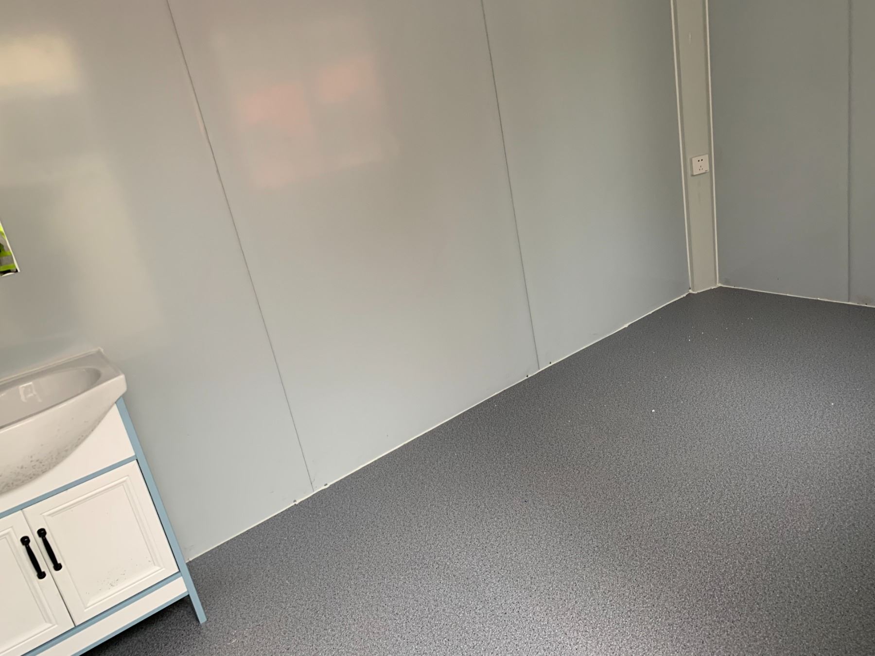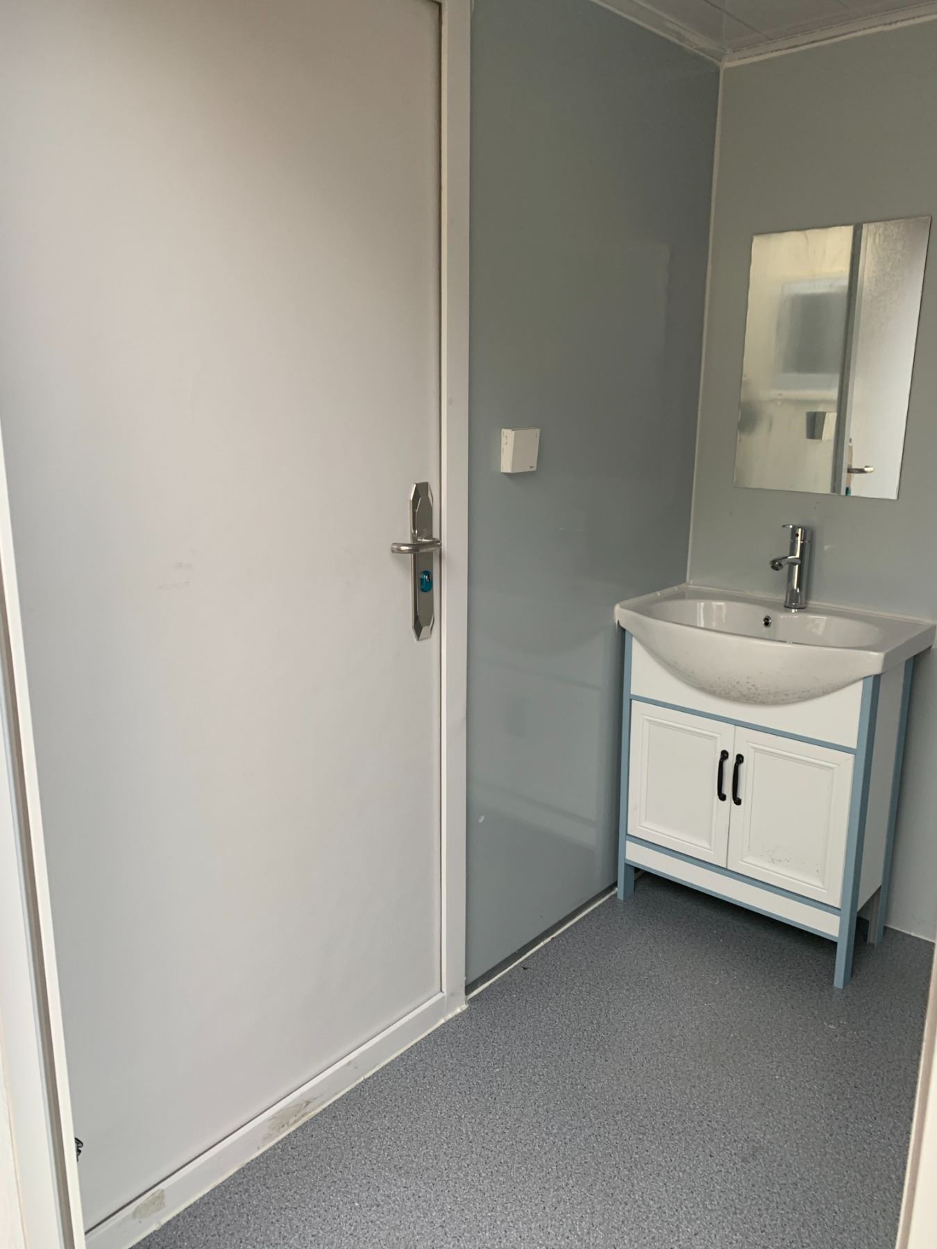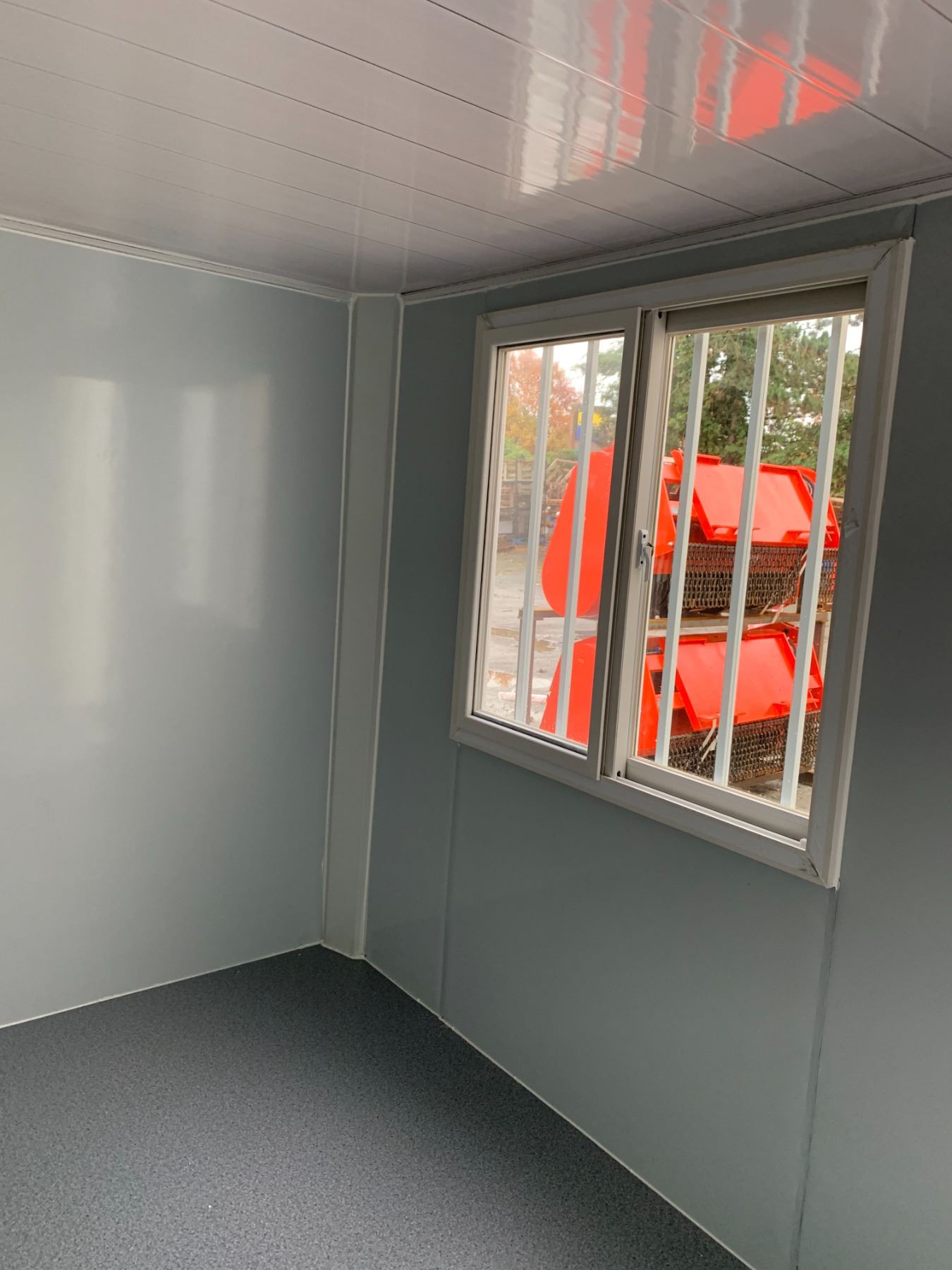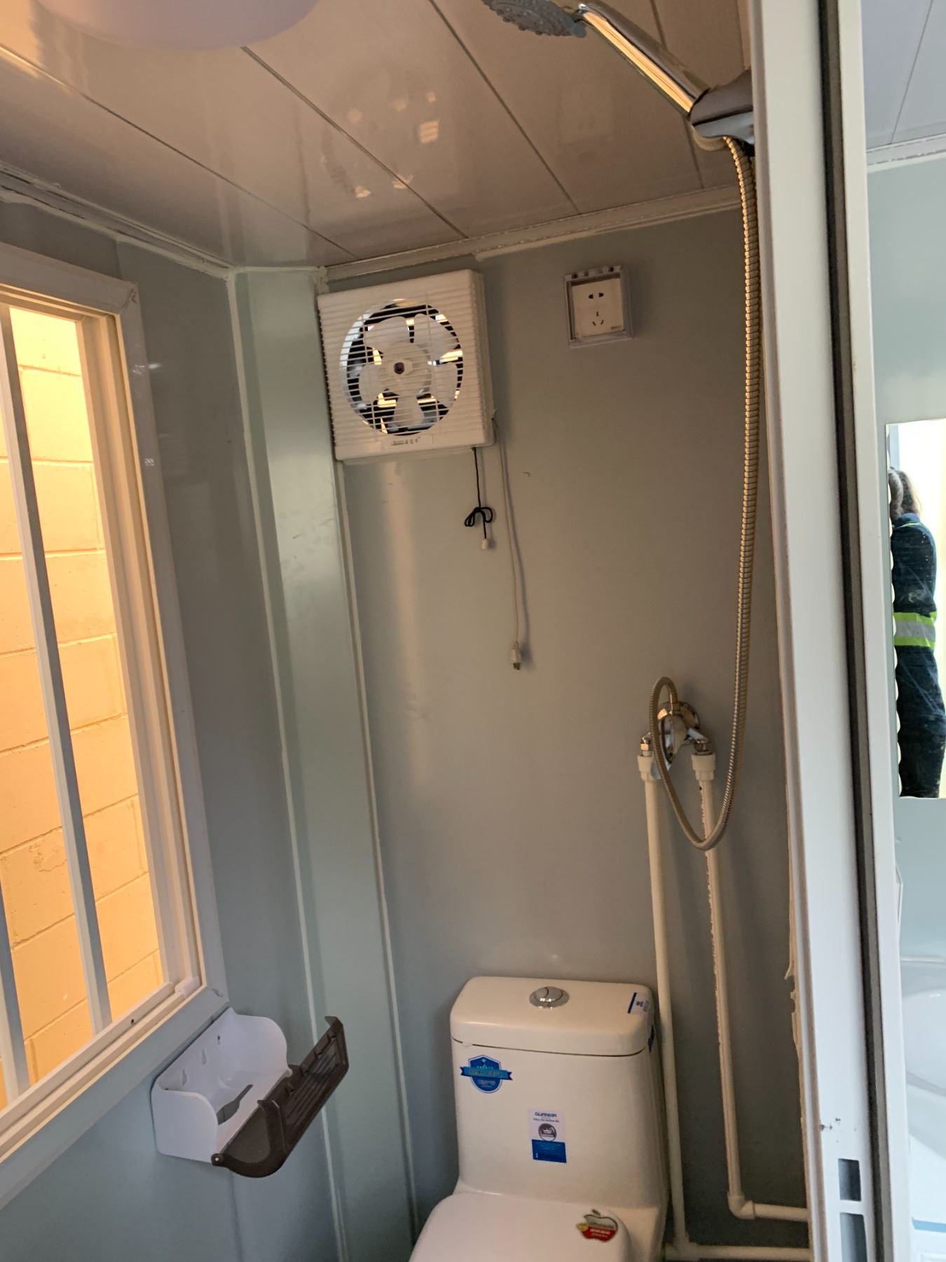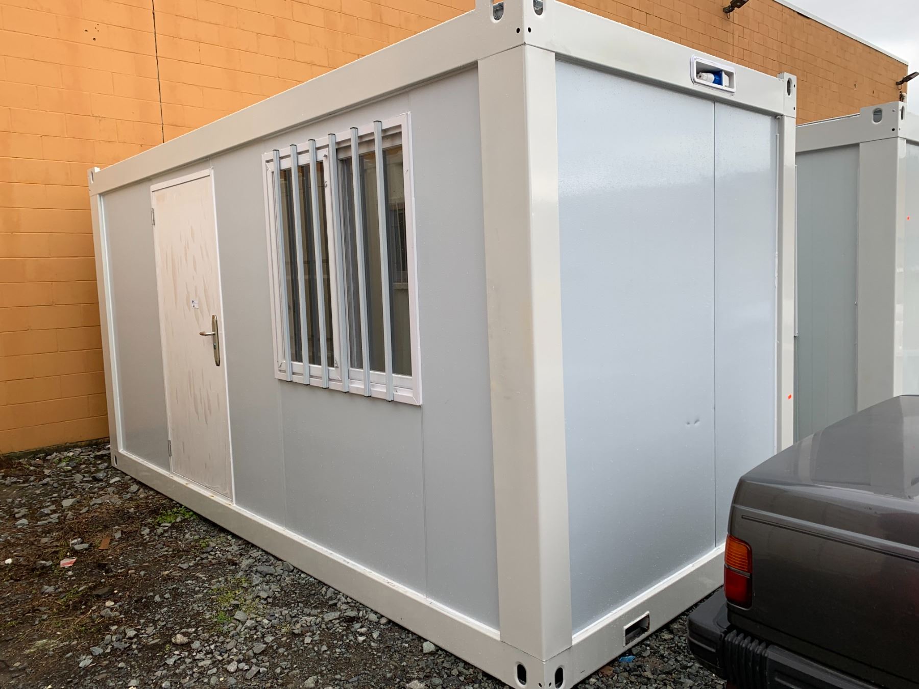 15FT WHITE PORTABLE OFFICE CONTAINER WITH SINGLE MAN DOOR / BAR WINDOW & WASHROOM