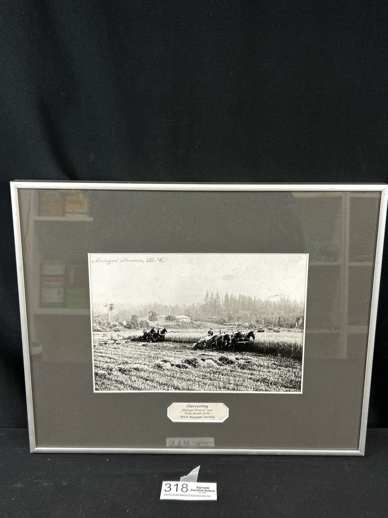 16" x 13" Framed 1905 Matsqui Praire Harvesting Photo MSSA Museum Society