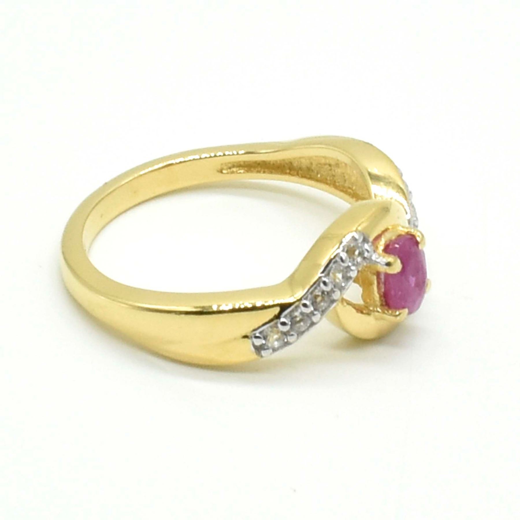 Gold Plated Silver Ruby White Topaz(0.45ct) Gold Rhodium Plated Ring (~weight 3.1g), Suggested Retail Value $160