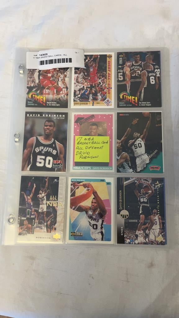 17 NBA BASKETBALL CARDS - ALL DIFFERENT - INCLUDING DAVID ROBINSON