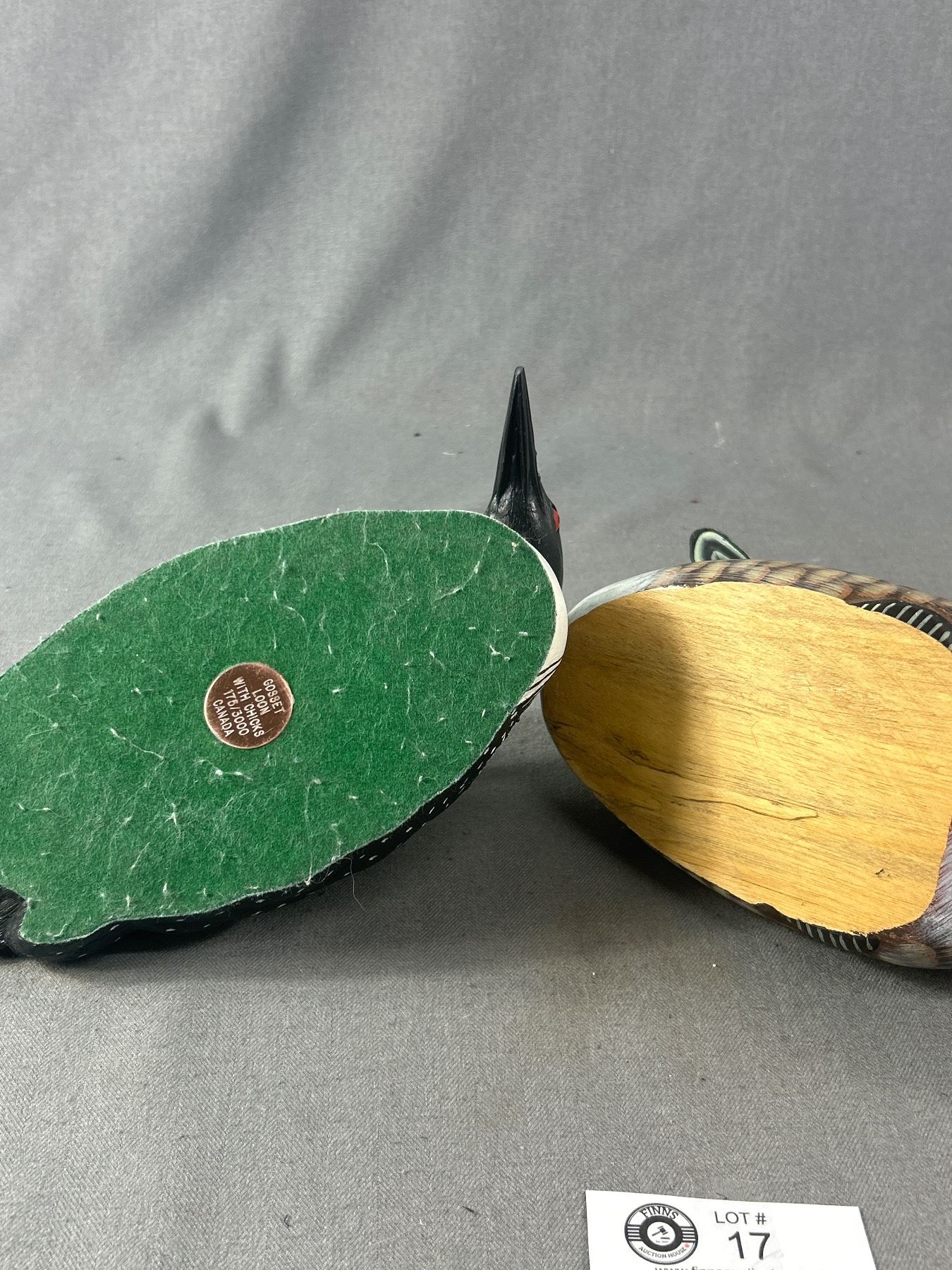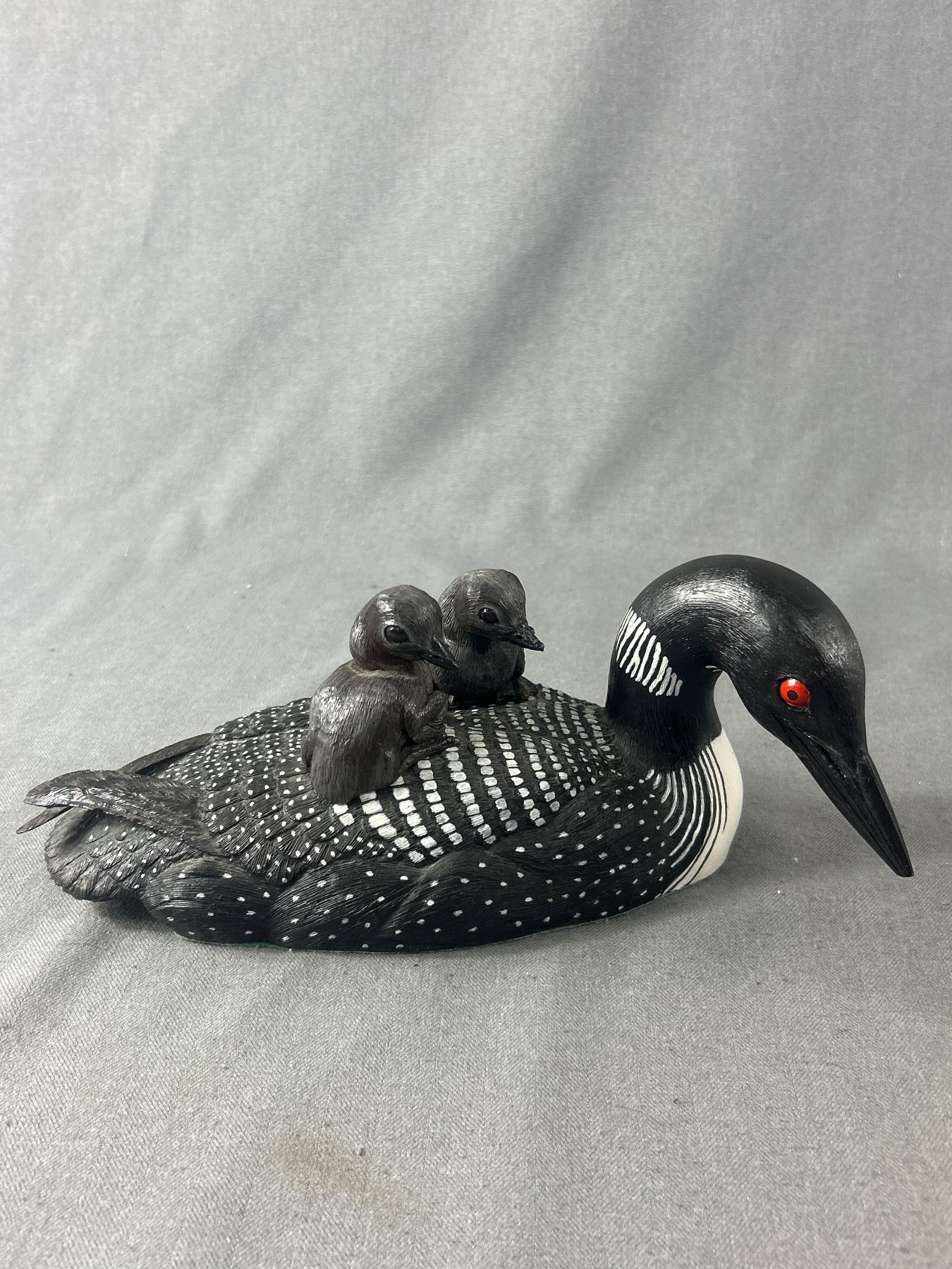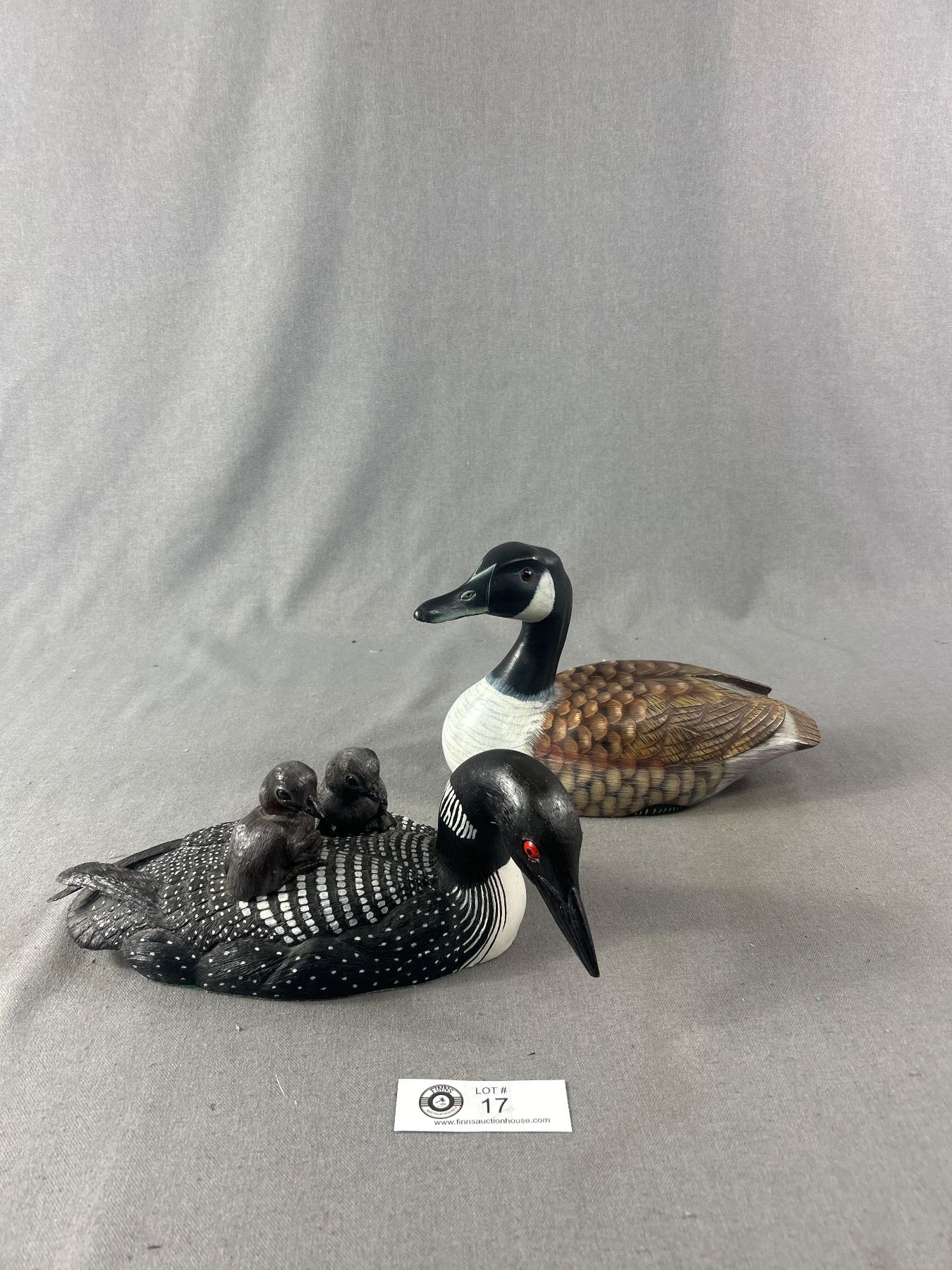 # 175/3000 CWG "Gosset Loon With Chicks" Canada. Approx.10" L & Very NiceVintage Hand Carved & Painted Wood, Canada Goose. Approx. 10" L x 6" H