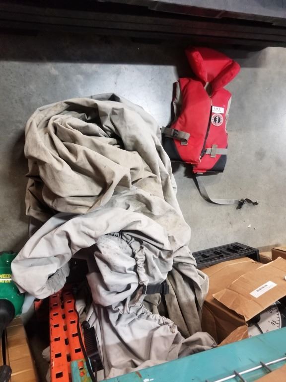 18 FOOT BOAT COVER AND KIDS LIFE JACKET