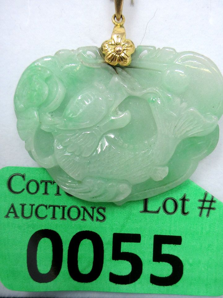 1/2 Gram 18 KT Gold bale. Hand carved Chinese Jade. 1.50 x 1.25 inches.