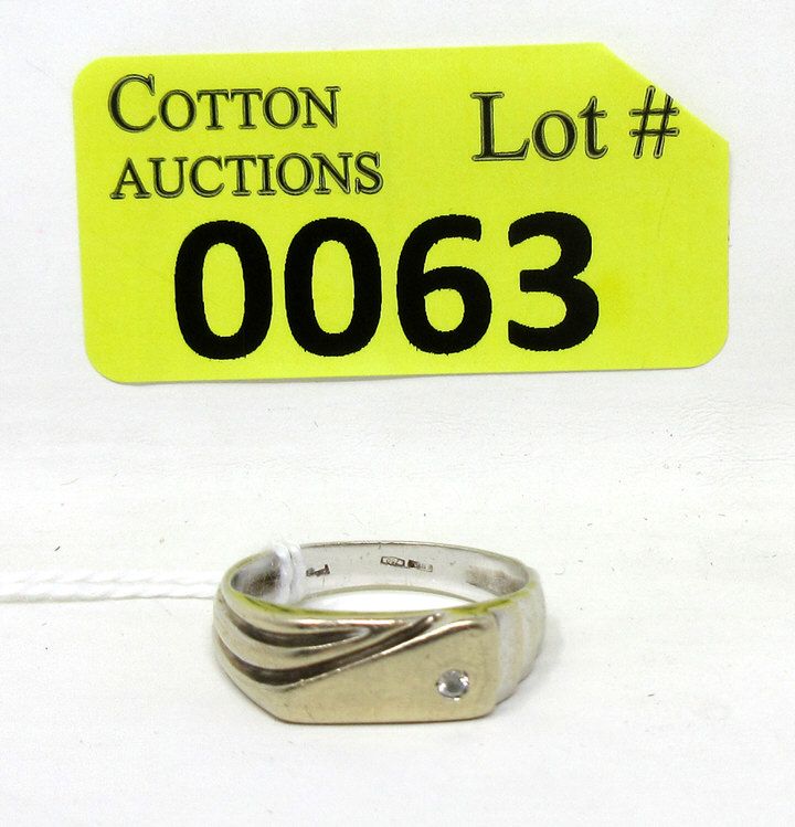 6.4 mm wide band with CZ accent stone. Total weight: 5.7 grams.