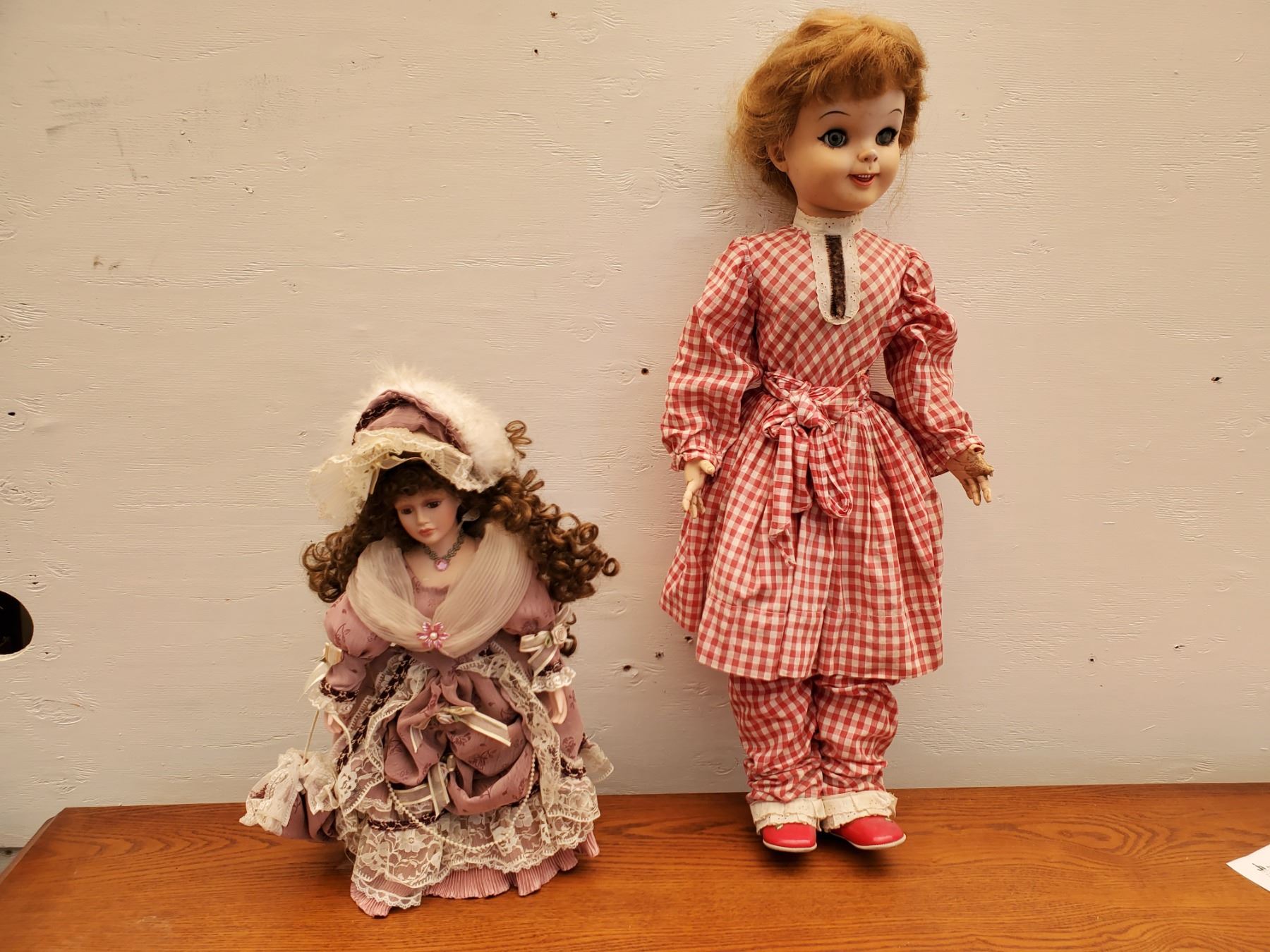 187-Porcelin Doll & Doll in pink Dress ******** 17% Buyer Fee. Payment Processed through Live Auction World ( Visa or Master Card ) pick up Saturday, Monday or Tuesday
