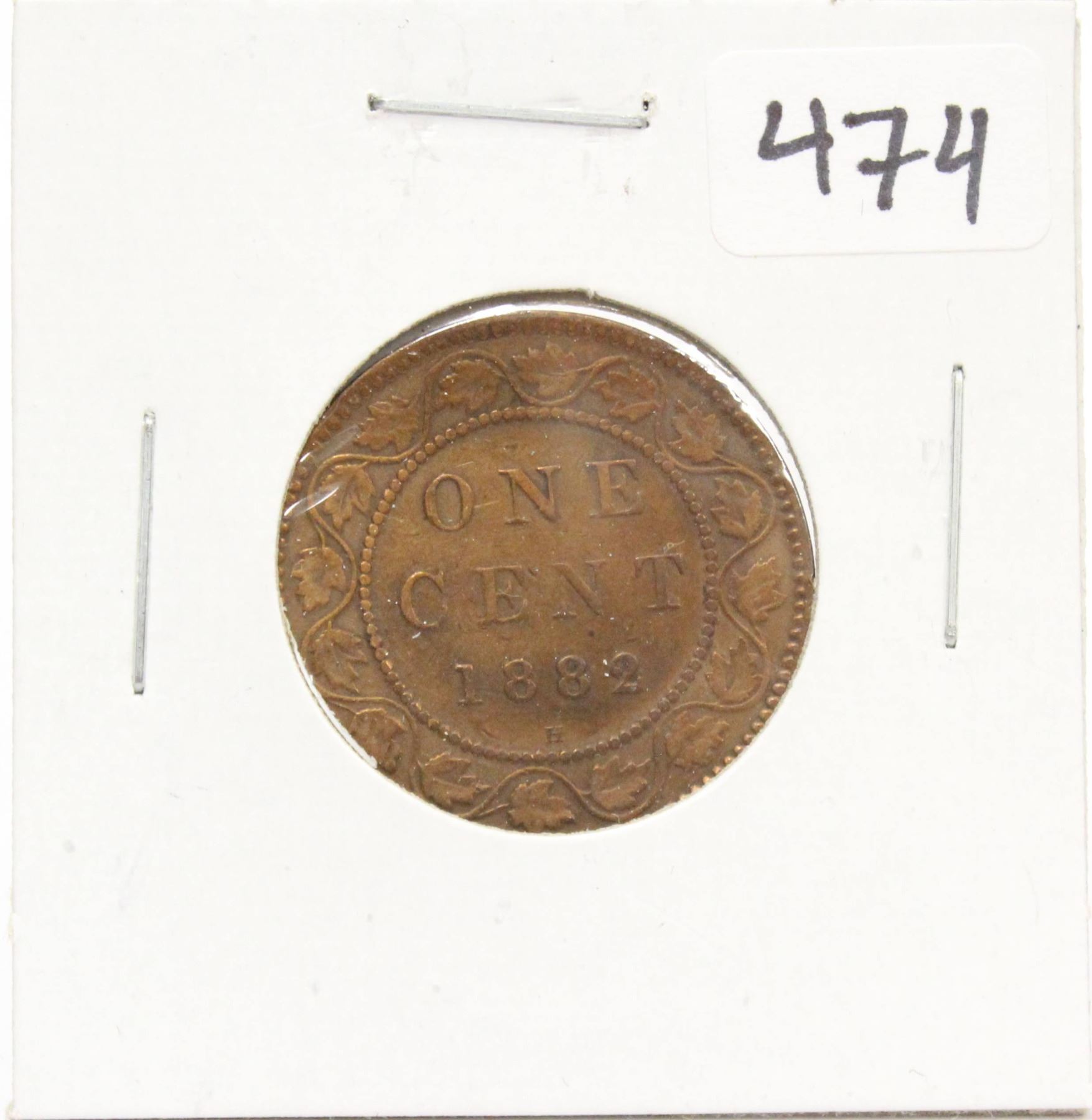 Queen Victoria Original Coin 1882 Canada Large Cent coin has a bend *damaged