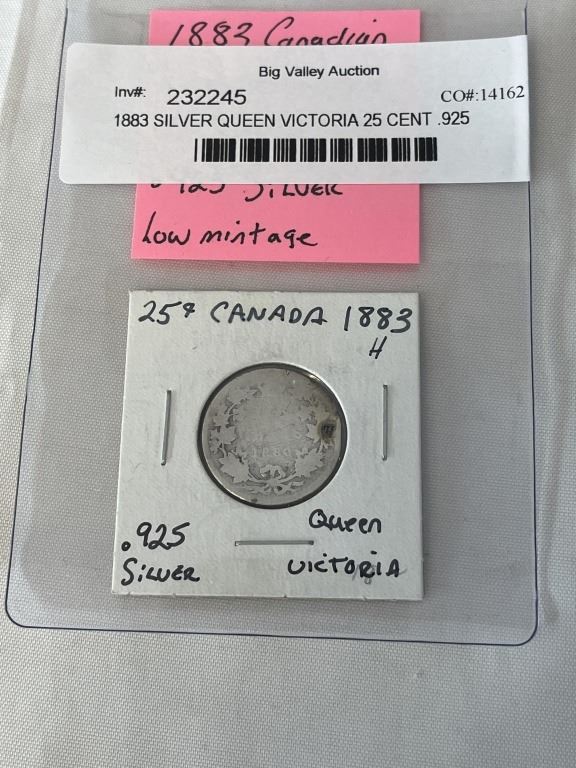 1883 SILVER QUEEN VICTORIA 25 CENT .925 SILVER LOW MINTAGE