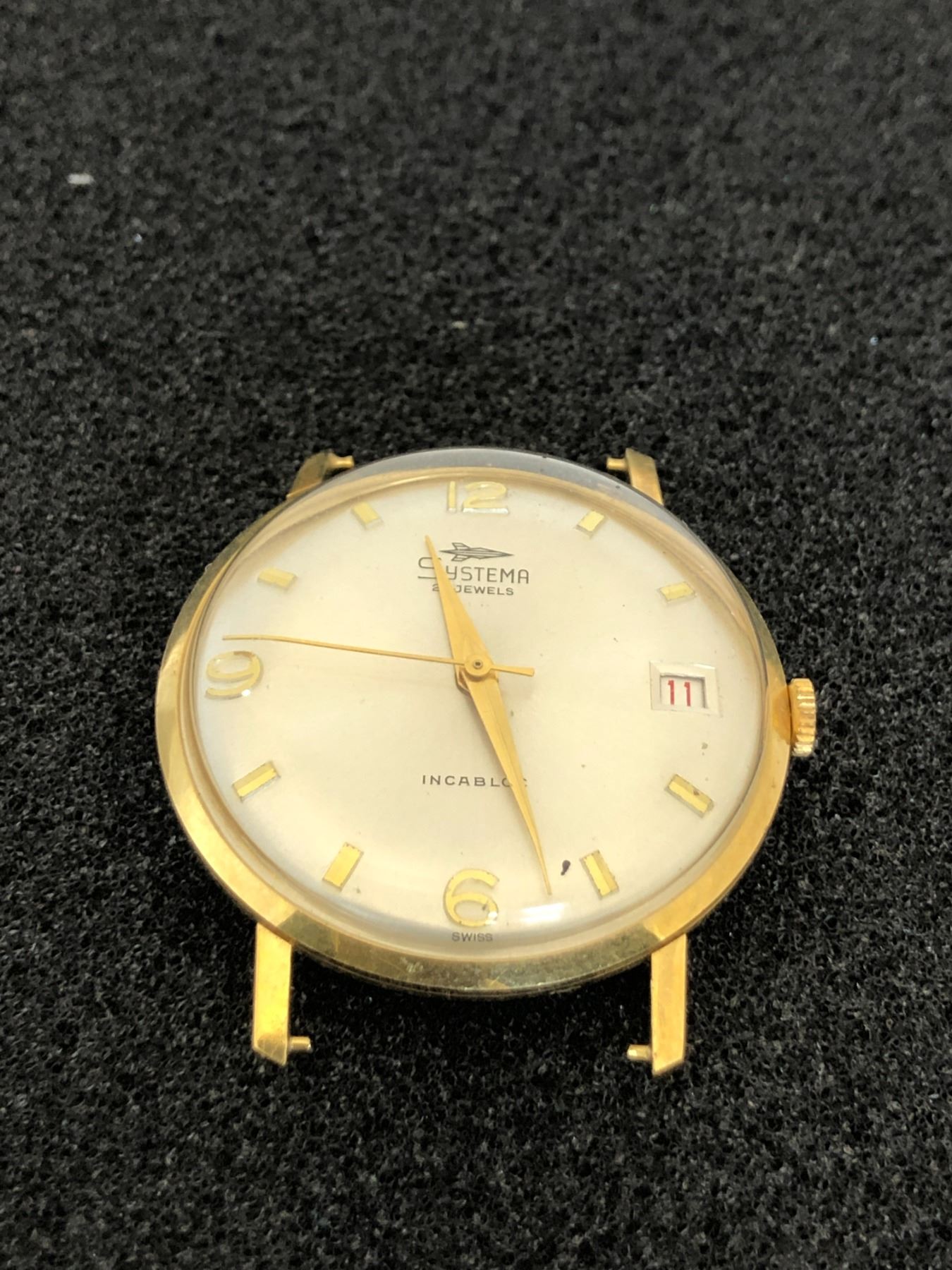 18K SYSTEMA MENS WRISTWATCH NO BAND REQUIRES SERVICE