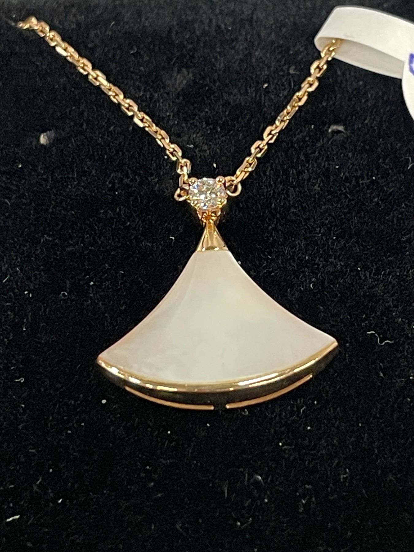 18KT Red Gold Pendant+Chain with 15pt Diamond BVLGARI Italy - 5.6 grams retail $3,000