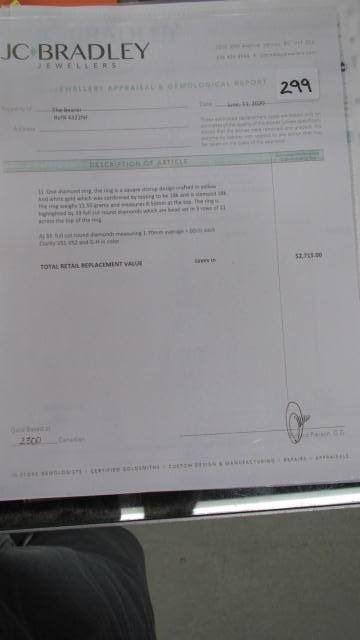 18kt DIAMOND RING WITH LOCAL APPRAISAL $2,715.00 (APPRAISAL IN OFFICE) - sz 6 1/4 approx.
