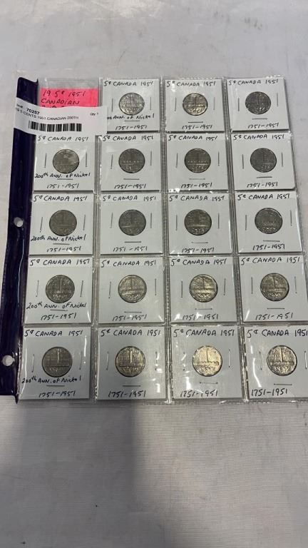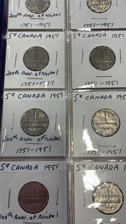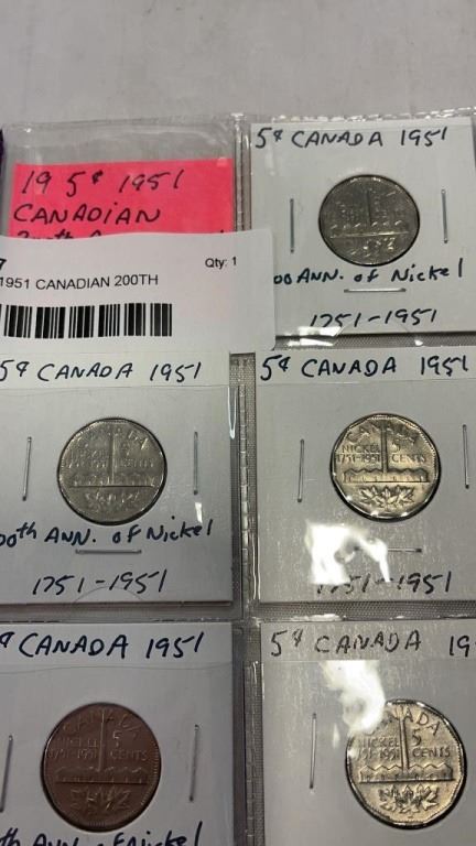 19 5 CENTS 1951 CANADIAN 200TH ANNIVARSARY OF THE NAMING OF NICKEL, 1751-1951