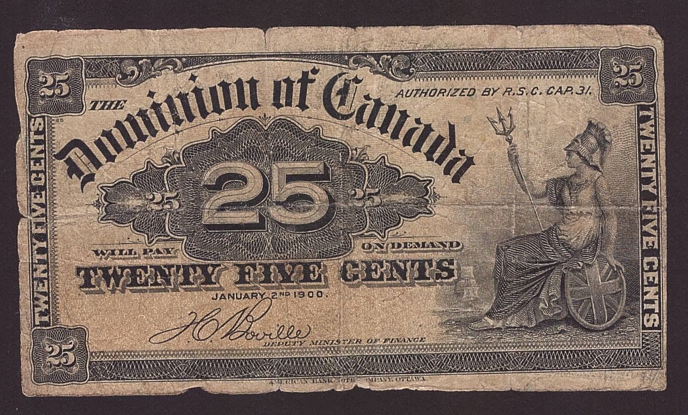 Original 1900 Dominion of Canada 25 Cent Banknote paper money Shinplaster