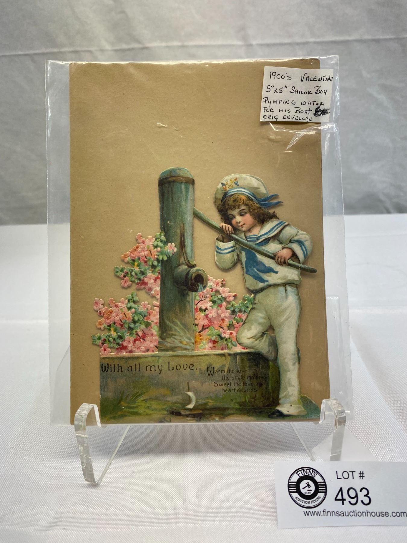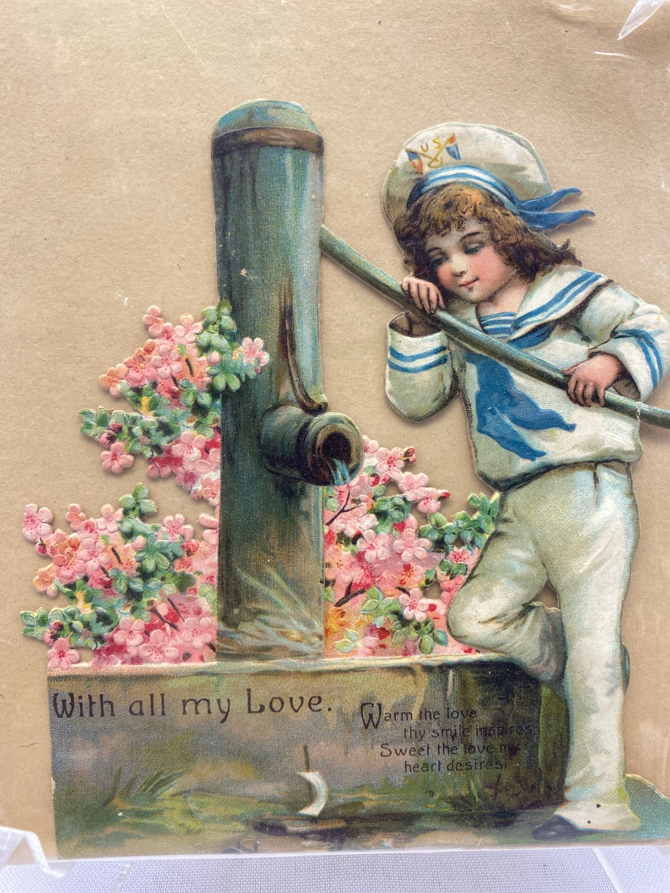 1900's Valentine 5x5 Sailor Boy Pumping Water For His Boat With Original Envelope