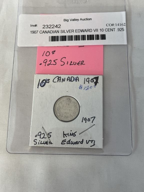 1907 CANADIAN SILVER EDWARD VII 10 CENT .925 SILVER
