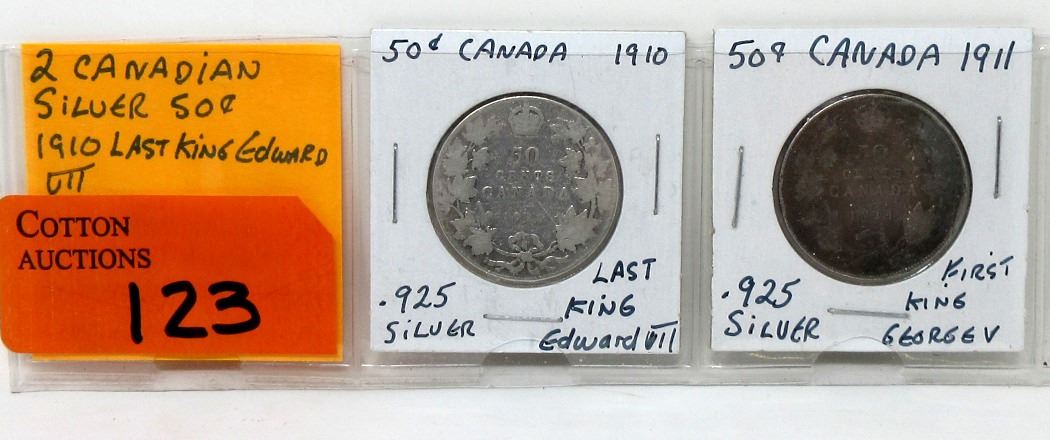 1910 Last year of the King Edward VII coin and 1911 First King George V (known as the Godless coin).