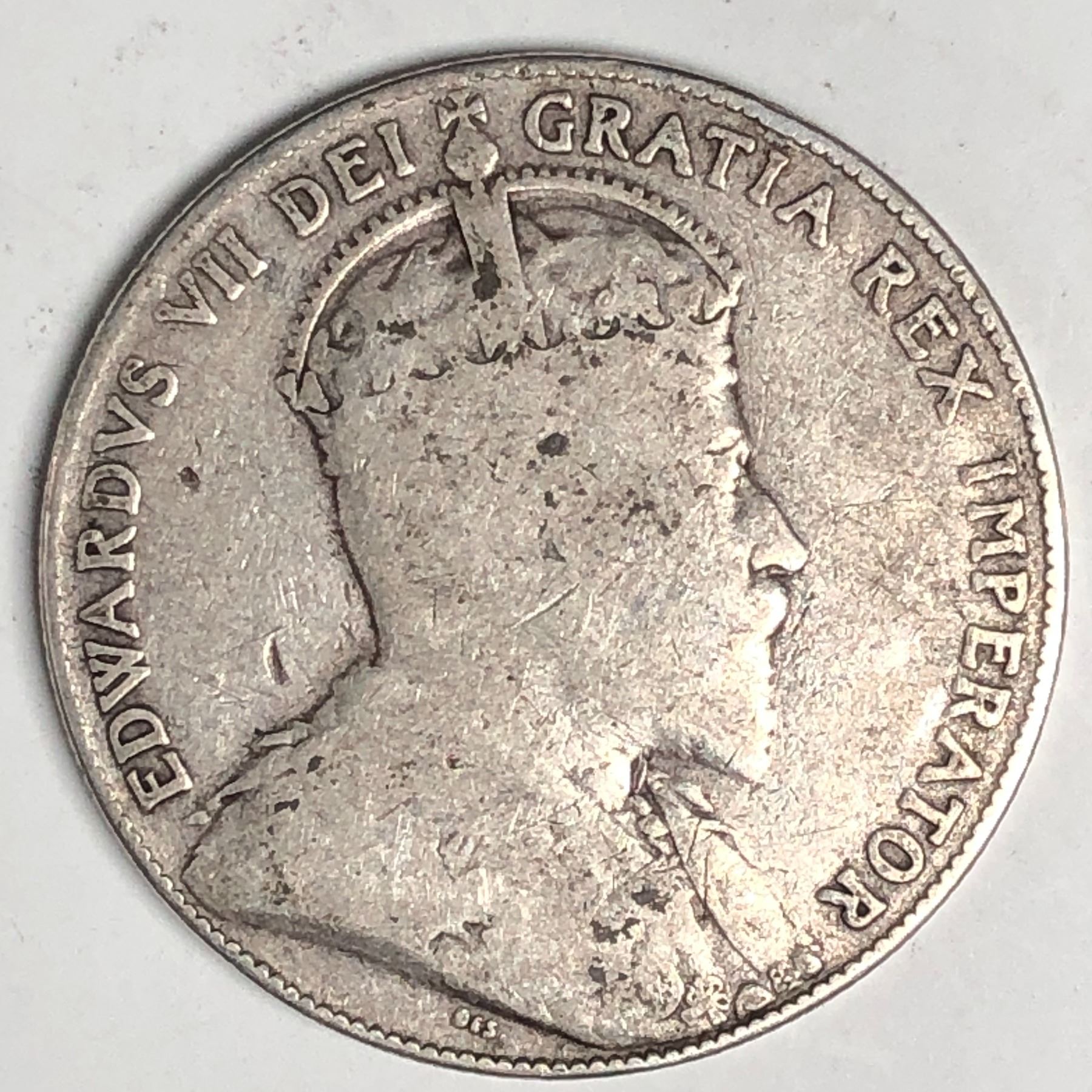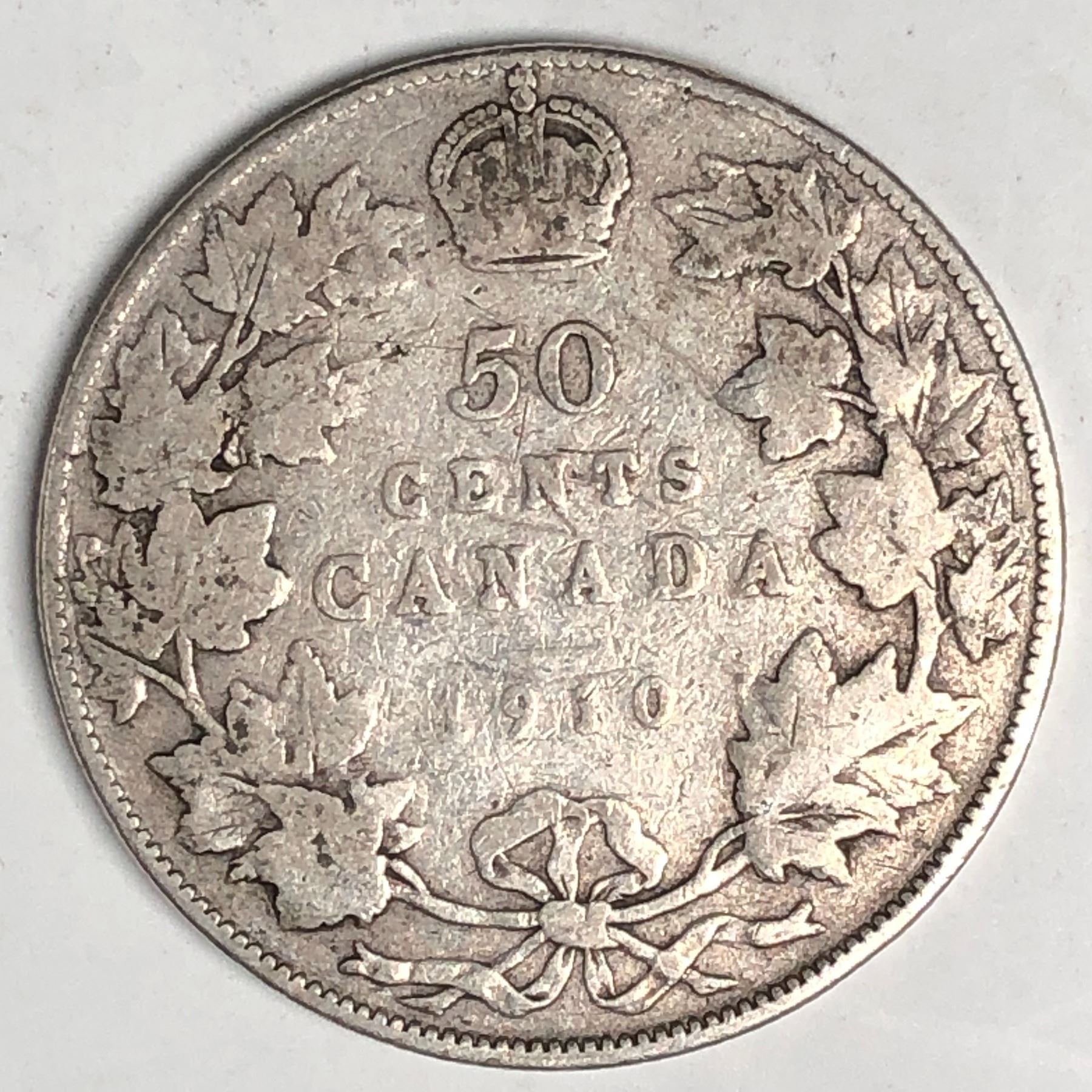 1910 King Edward VII 50 Cents VG++ Victorian Leaves