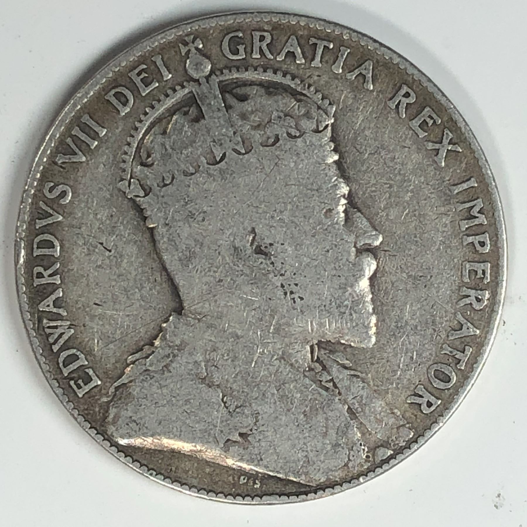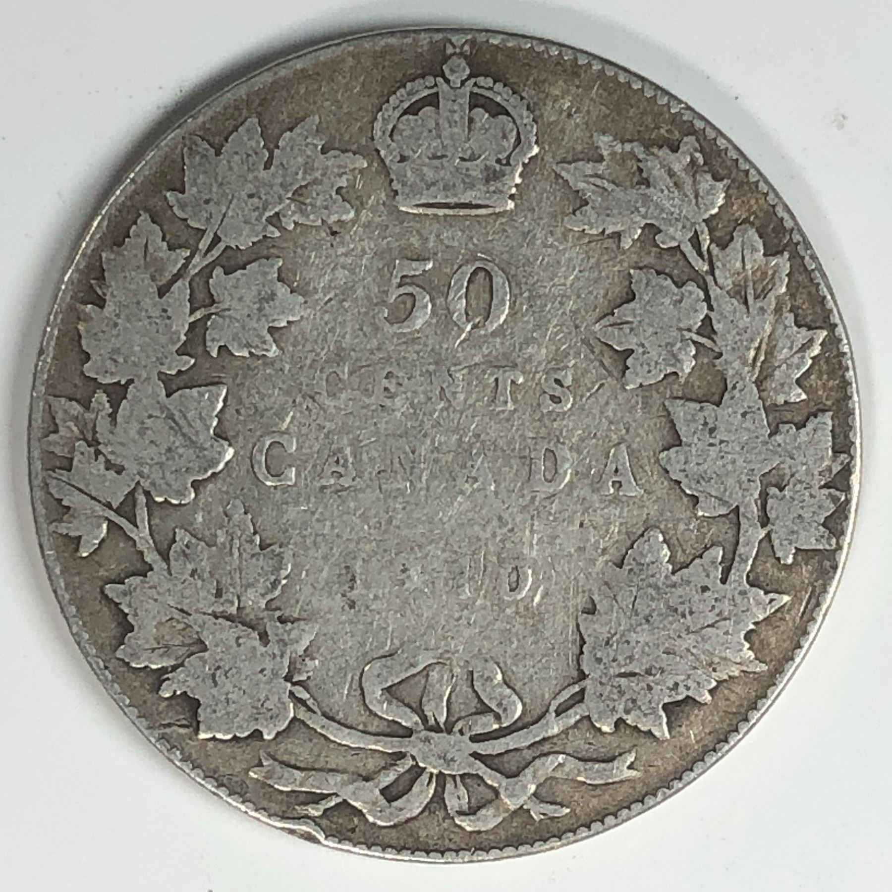 1910 King Edward VII 50 Cents VG++ Victorian Leaves