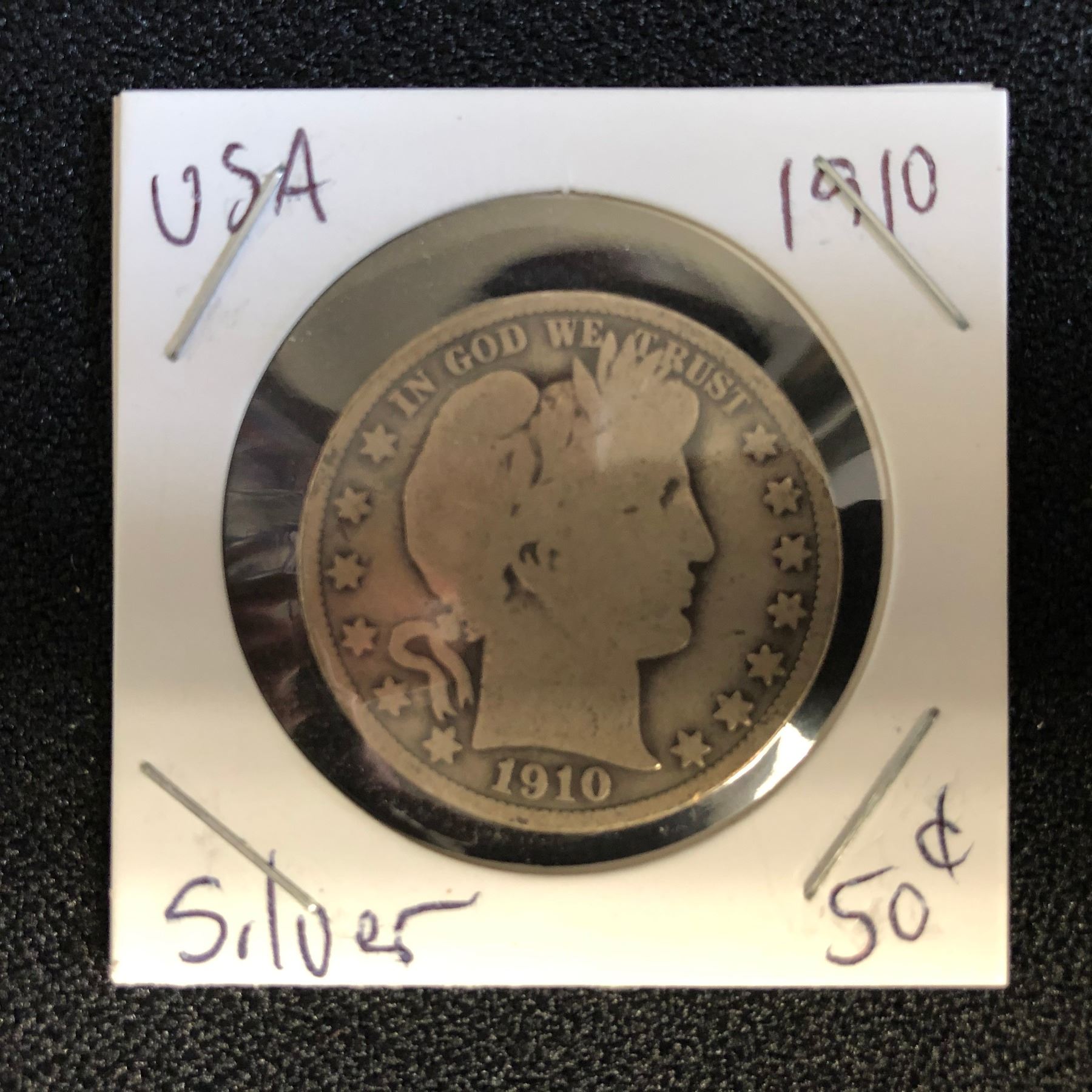 1910 USA 50c SILVER BARBER (PHILADELPHIA MINTED)
